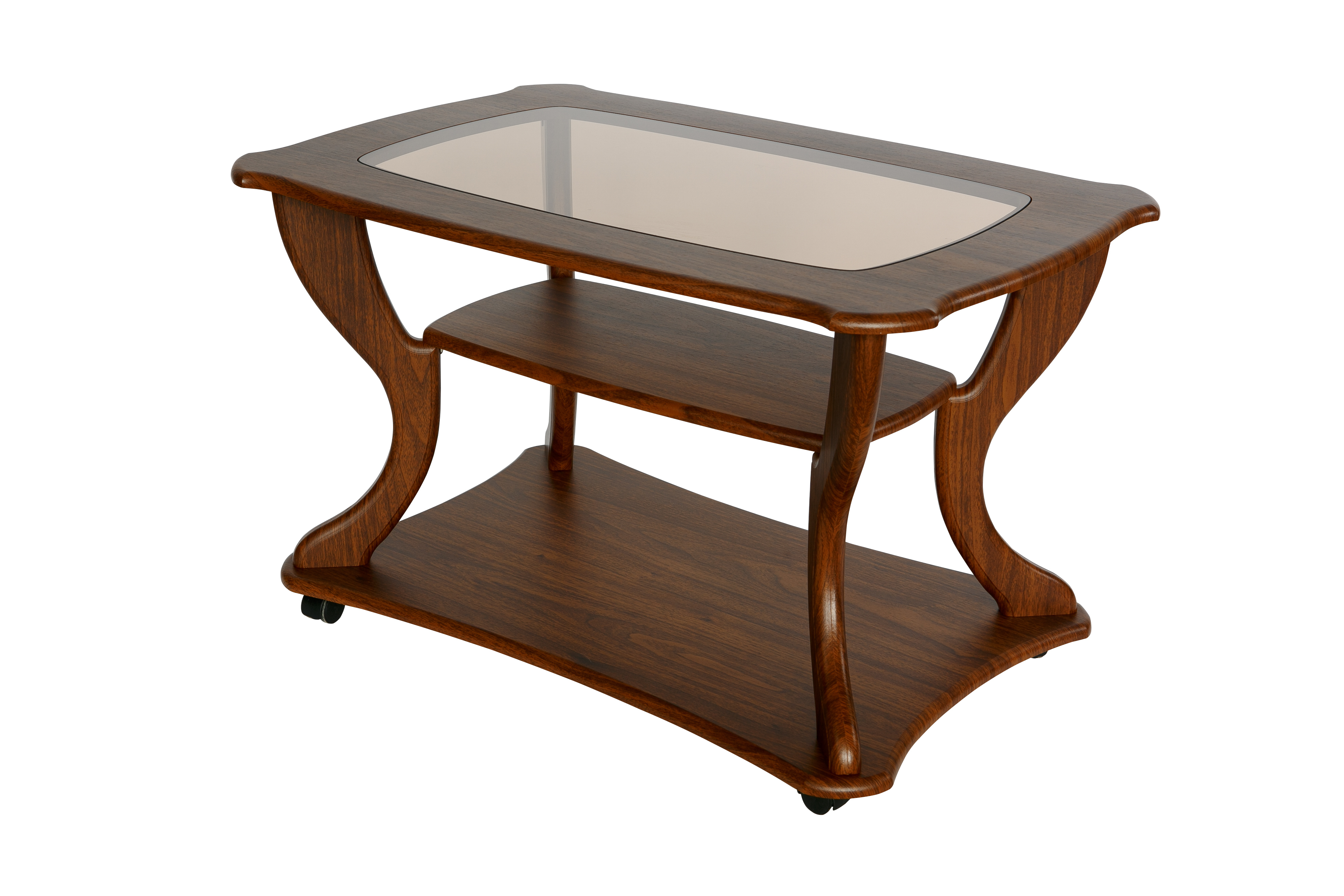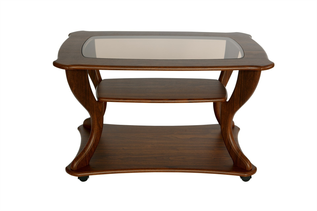 Журнальные столы со стеклянной столешницей несомненно будут украшением любой гостиной. Данная модель журнального стола - это прекрасный вариант для любого интерьера. Особую грацию столику придает столешница со стеклянной вставкой из матового или тонированного стекла (толщина 4 мм) в зависимости от цвета изделия. Матовое стекло используется при производстве столов в цвете дуб, венге, слива, тонированное-бук, ольха, вишня, орех.Стол дополнен полкой длиной 600 мм, шириной 300 мм и основанием на колесной опоре, что позволит легко перемещать его по комнате. Размер столешницы: длина 900 мм, ширина 600 мм, высота стола 560 мм.