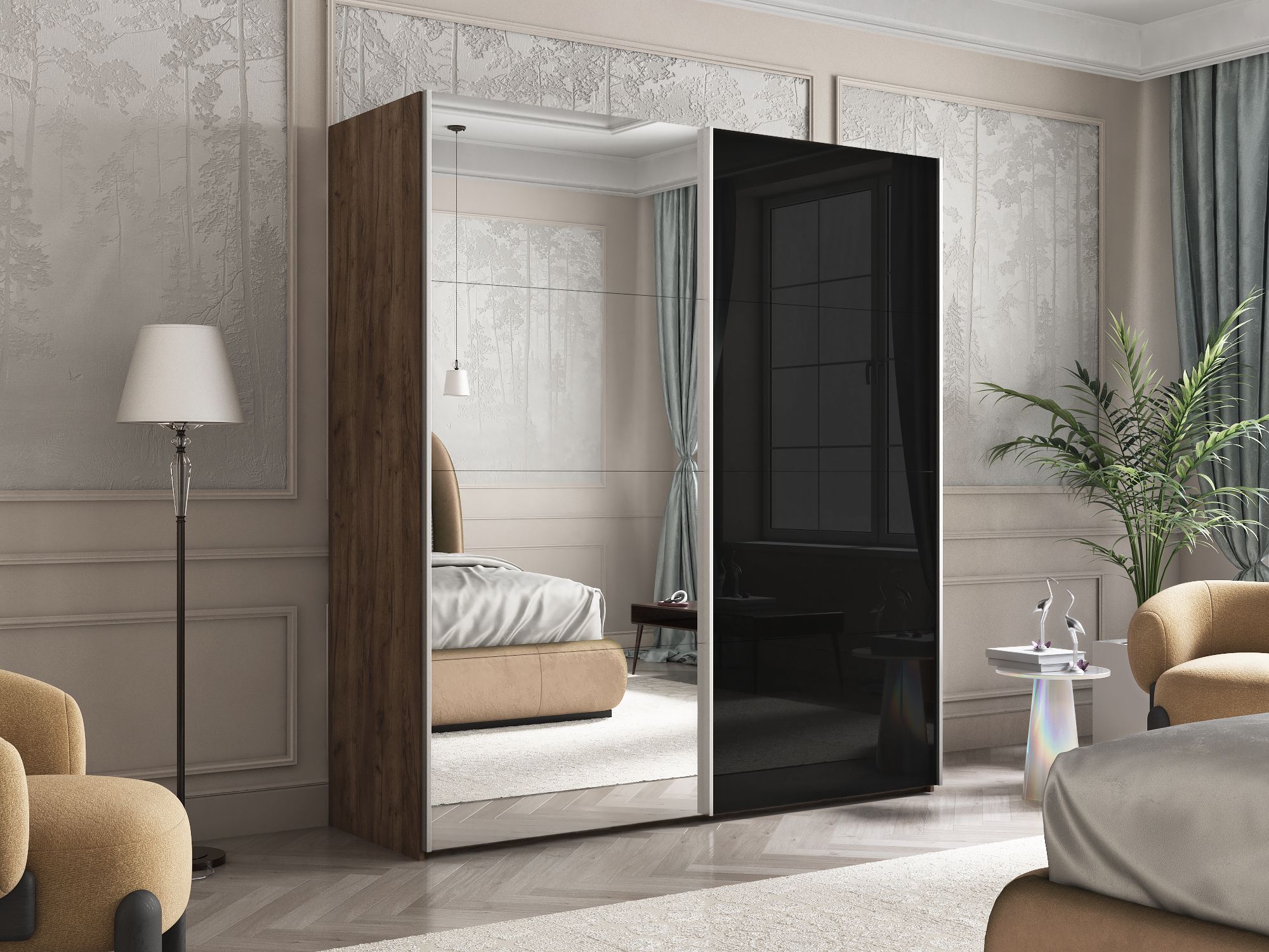 Отзывы о Столплит Шкаф Эста дуо Стекло черное/зеркало 2400 х 2000 х 660 Дуб/крафт/табак