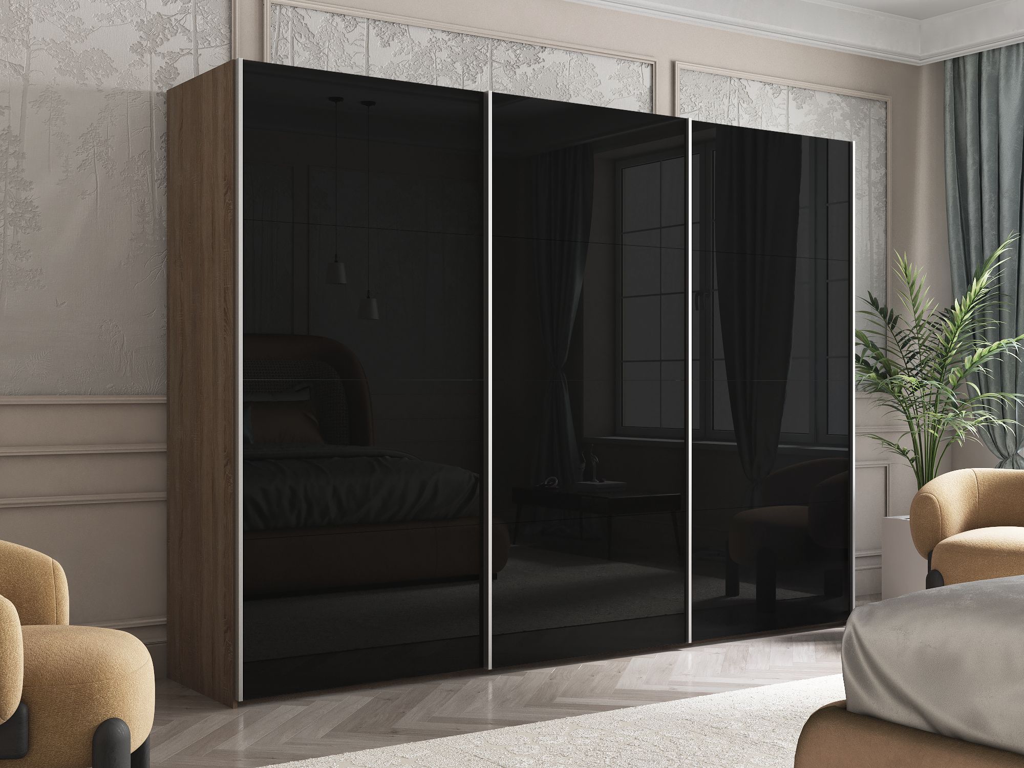 Отзывы о Столплит Шкаф Эста трио Стекло черное 2400 х 2700 х 660 Дуб Бардолино