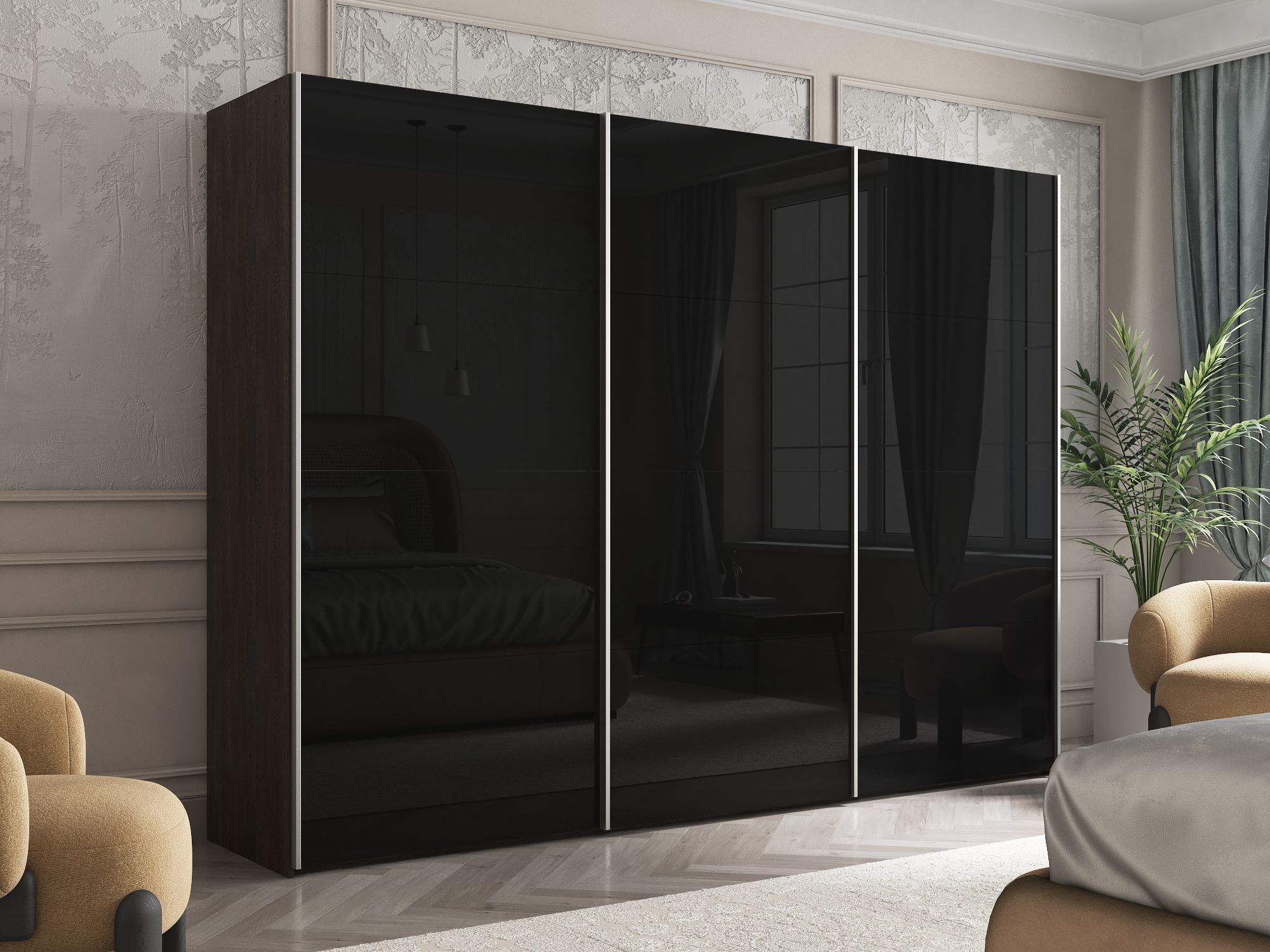 Отзывы о Столплит Шкаф Эста трио Стекло черное 2400 х 3000 х 660 Венге мали