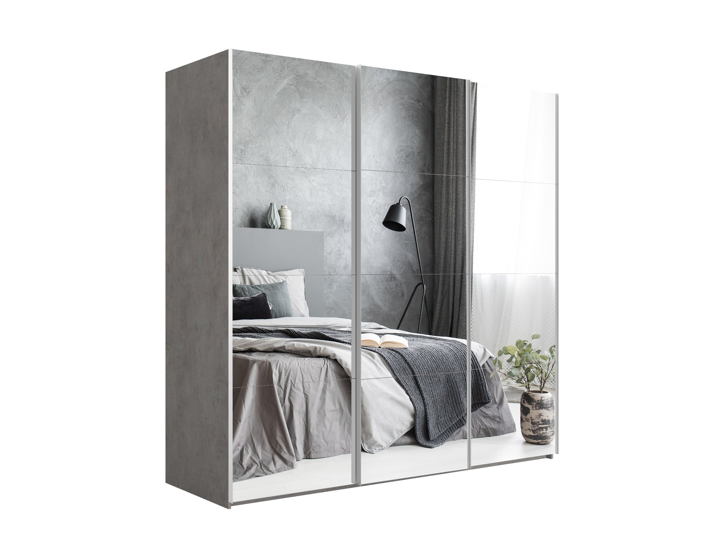 Отзывы о Столплит Шкаф-купе Эста Зеркало+Зеркало+Зеркало 300х66х240 Бетон серый