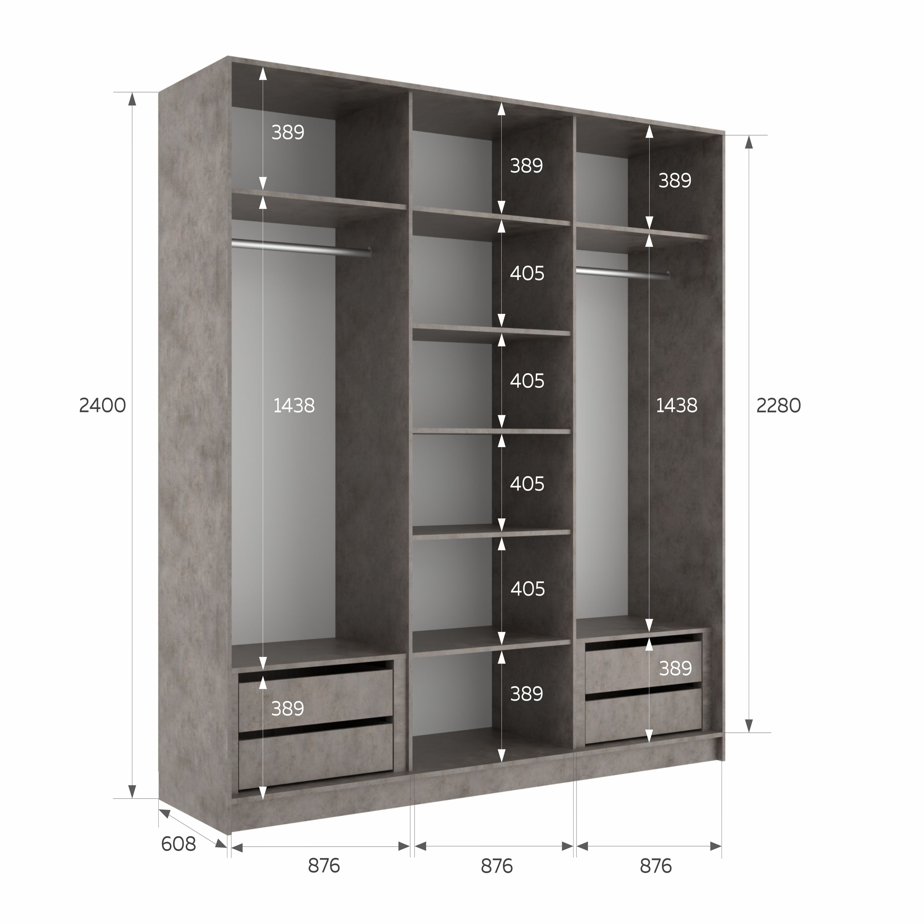 Отзывы о Столплит Шкаф-купе Эста Трио Стекло белое 270х66х240 Бетон серый
