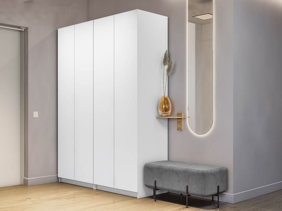 Отзывы о Столплит Распашной шкаф Локер 800+800 (Гармошка с системой Push to Move/Правый) с полками Белый снег