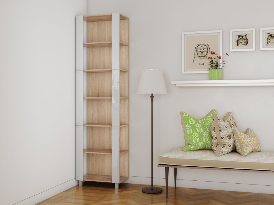 Отзывы о Столплит Стеллаж модульный Универсальный 35х44х220 Белое стекло Дуб сонома