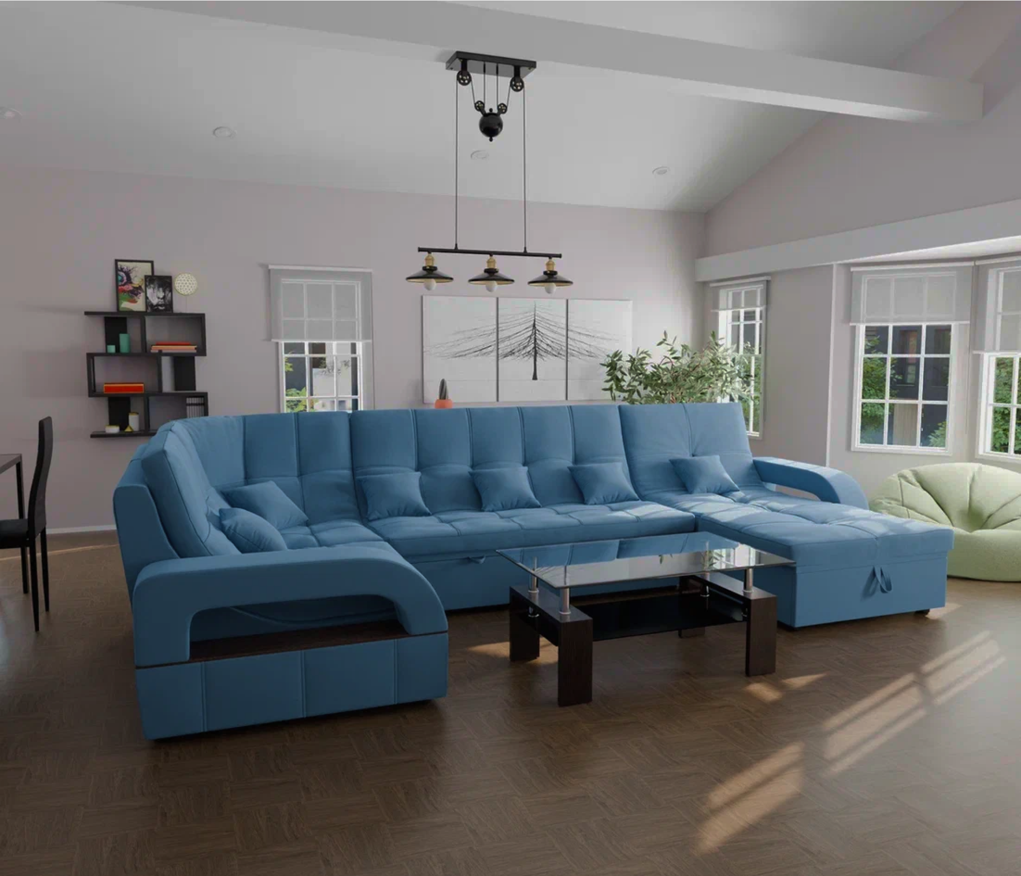 Он имеет высоту 97 см, ширину 350 см и глубину 187 см. Обит велюром - Veluta lux. Диван обладает универсальным расположением угла, что позволяет его использовать в любом помещении.