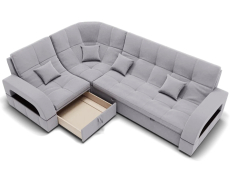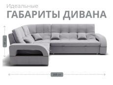 Он имеет высоту 97 см, ширину 187 см и глубину 268 см. Диван обладает универсальным расположением угла, что позволяет его использовать в любом помещении.