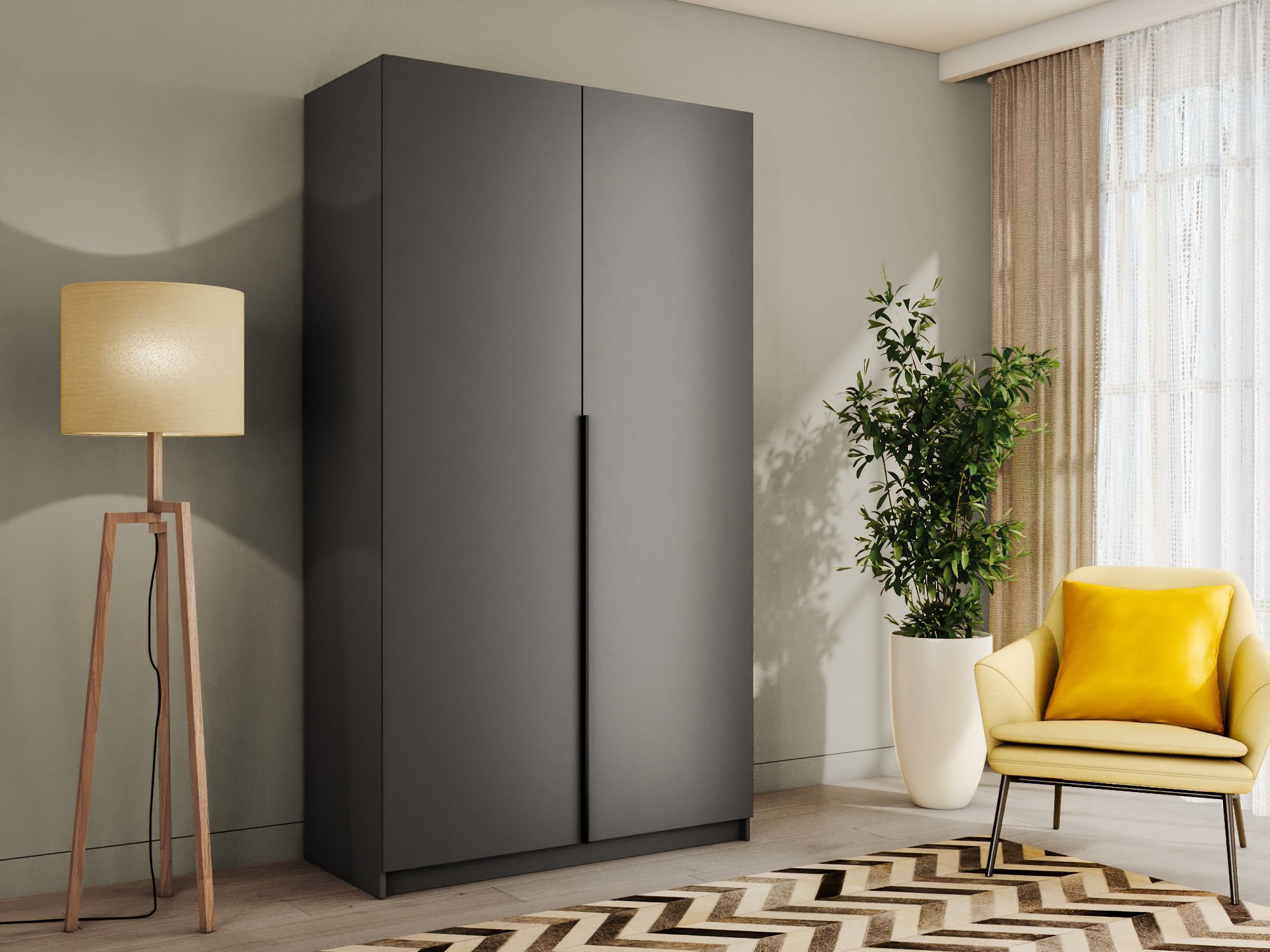 Благодаря надежным полкодержателям - штифтам, полки шкафа могут выдерживать до 15 кг, штанга выдерживает нагрузку до 60 кг. Вы сможете убрать сезонные вещи, постельное белье на верхние полки. Распашной шкаф оснащен долговечной, ударостойкой кромкой ПВХ, которая защищает его торцы от сколов и повреждений, что обеспечит вам комфортное и долгое использование гардероба. Распашная система дверей Titus B-Type обеспечивает надежное прилегание дверцы к корпусу шкафа и высокую износостойкость. Механизм не деформируется при значительных нагрузках и максимально практичен в эксплуатации. Шкаф оснащен удобной минималистичной ручкой, изготовленной из алюминия. В производстве используется безопасное ЛДСП международного класса Е1, что способствует безопасному использованию на протяжении всего срока эксплуатации.