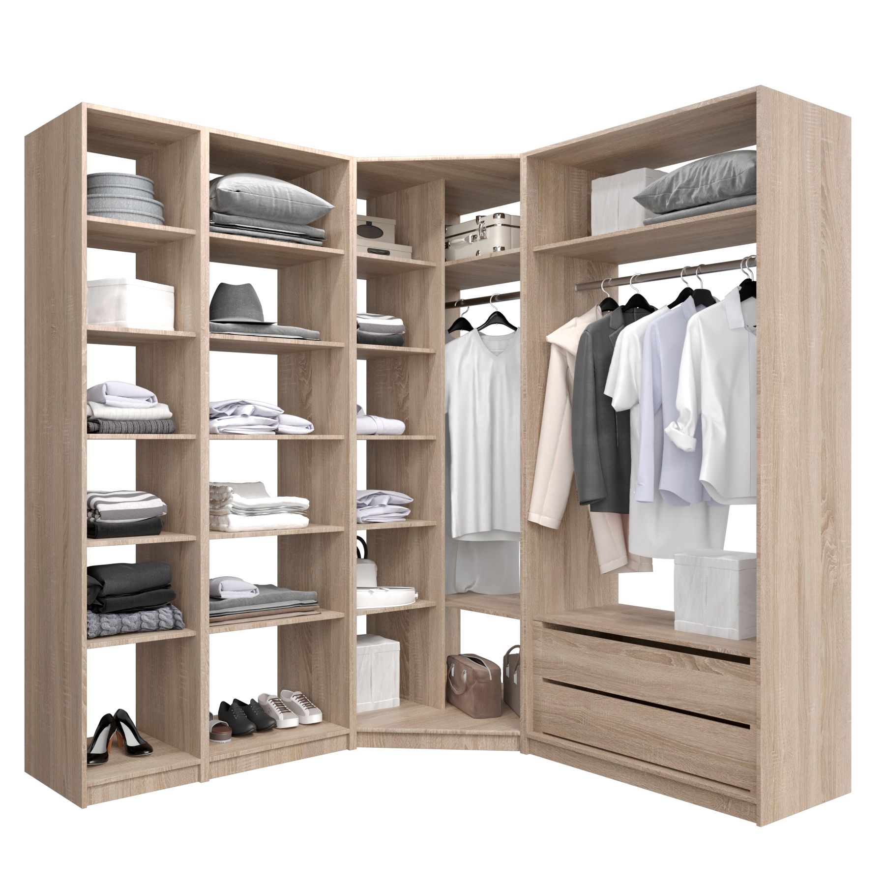 Отзывы о Столплит Угловая гардеробная система с полками и модулем MOD_COMPL_UG Дуб сонома