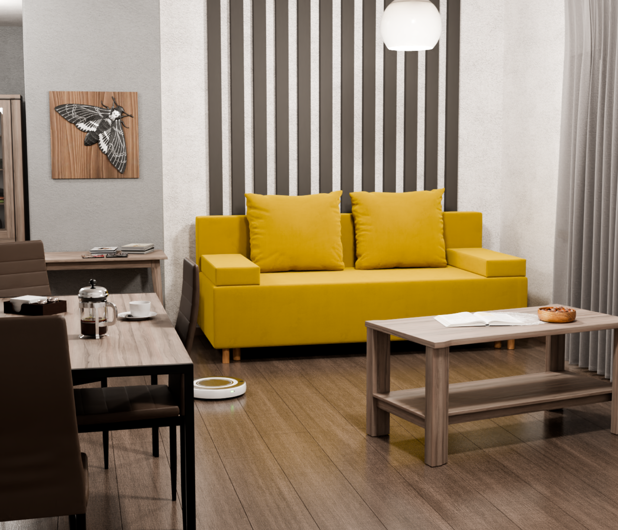 Диван-кровать имеет универсальный угол, что позволяет установить его в любой комнате, даже если она небольшая. Обивка выполнена из высококачественного велюра, который не только выглядит стильно, но и легко чистится.