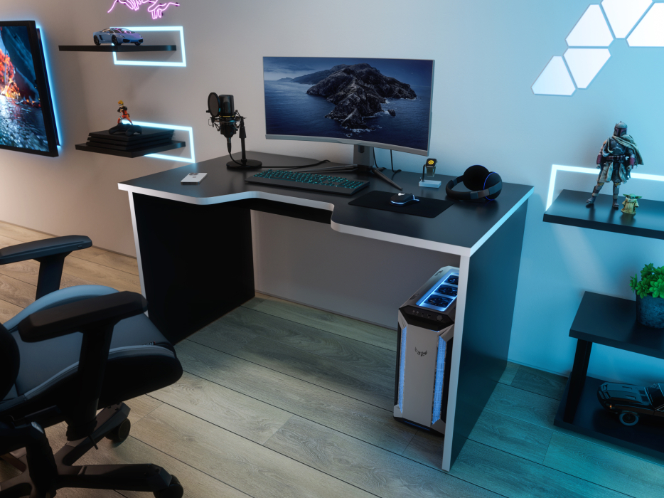 Игровой компьютерный стол С-240 предназначен для эксплуатации в офисах, образовательных учреждениях, а также домашних условиях. Благодаря своей форме удобен для долгой работы с компьютером. Глубина 75 см обеспечит удобную работу как на ноутбуке, так и на стационарном компьютере. Длина стола 135 см позволяет удобно разместить 2 монитора. Вырез под провода ш450 х г20 мм.