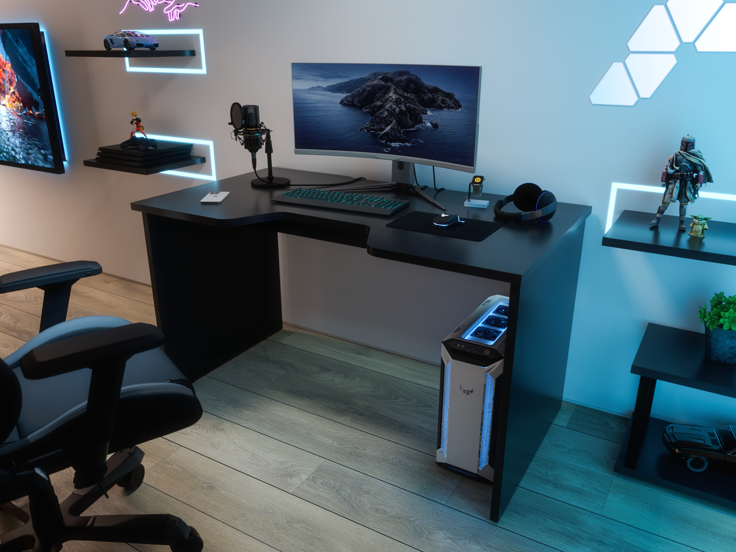 Игровой компьютерный стол С-240 предназначен для эксплуатации в офисах, образовательных учреждениях, а также домашних условиях. Благодаря своей форме удобен для долгой работы с компьютером. Глубина 75 см обеспечит удобную работу как на ноутбуке, так и на стационарном компьютере. Длина стола 135 см позволяет удобно разместить 2 монитора. Вырез под провода ш450 х г20 мм.