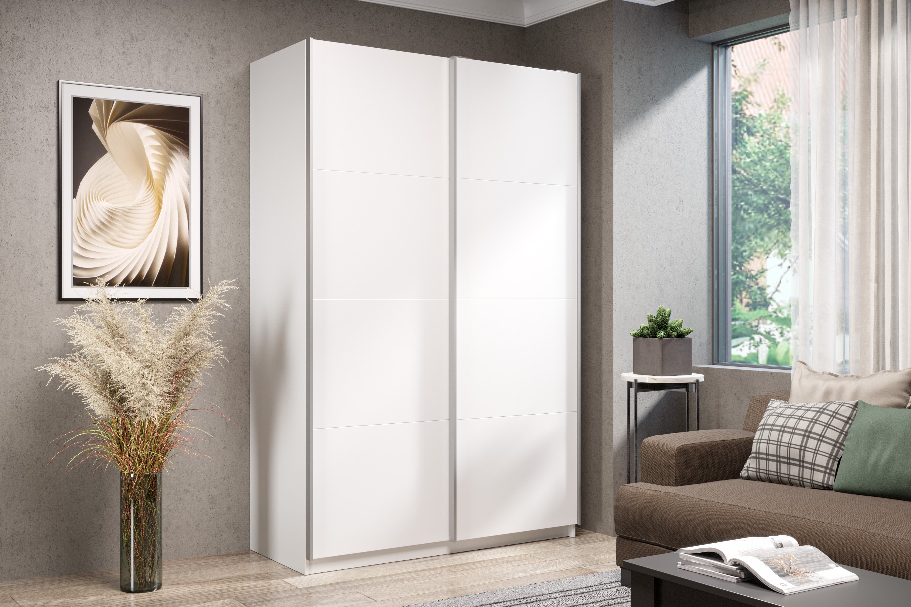 Шкаф-купе Smart 1622 2х дверный (фасады ЛДСП) профиль серебро (Белый)