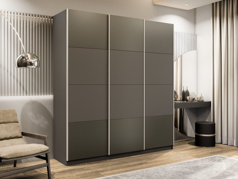 Отзывы о Столплит Шкаф-купе Эста 3-х дверный ДСП/Стекла хаки/Доводчик 300х66х240 Диамант серый