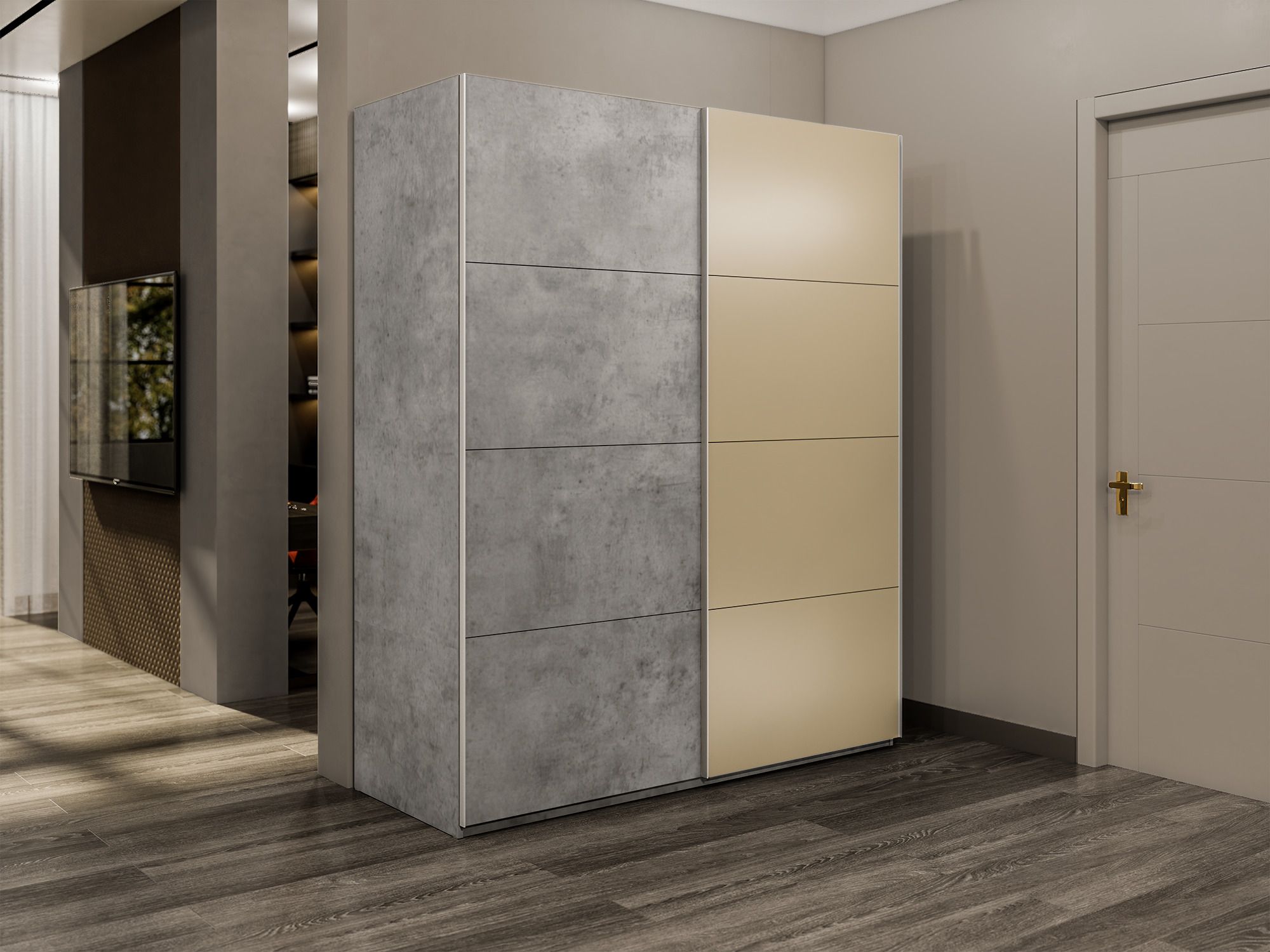 Шкаф-купе Эста 2-х дверный ДСП/Стекла фисташка/Доводчик 160х66х240 (Бетон) Код I0000408504
