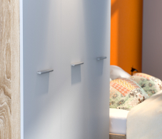 Лаконичная фурнитура, прочные крепежные элементы, протекторы, которые не позволяют повредить полы – детали, которые говорят о продуманности дизайна и достойном качестве шкафа Мамбо СБ-2676.