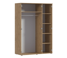 Габаритные размеры шкафа Мамбо СБ-2676 – ширина 135 см, высота 191 см и глубина 55 см. Он состоит из двух отделений. Широкое отделение со штангой для плечиков и антресолью и узкое – с пятью вместительными полками. Корпус шкафа Мамбо СБ-2676 выполнен из прочного и современного материала КДСП, а фасады - из ЛДСП. Сам корпус имеет отделку в цвете «Дуб Сонома», фасадные поверхности белого цвета.