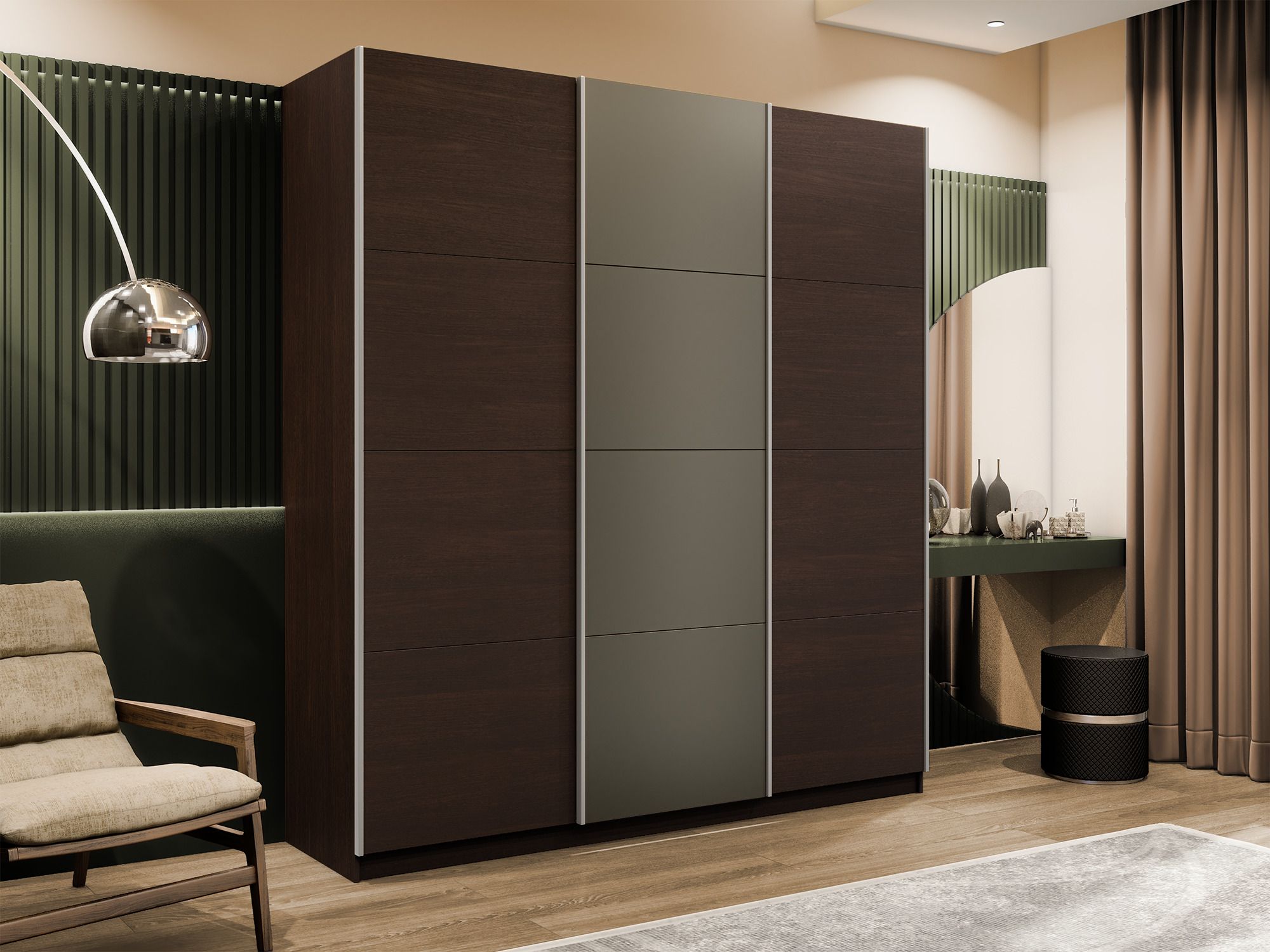 Отзывы о Столплит Шкаф-купе Эста 3-х дверный ДСП/Стекла хаки/Доводчик 270х66х240 Венге мали