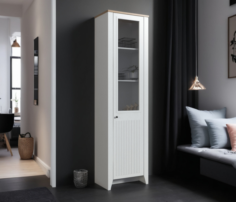 Отзывы о Столплит Шкаф-витрина Монтана СБ-3555 Белый Альпийский,Дуб Гамильтон/МДФ Дуб Белый
