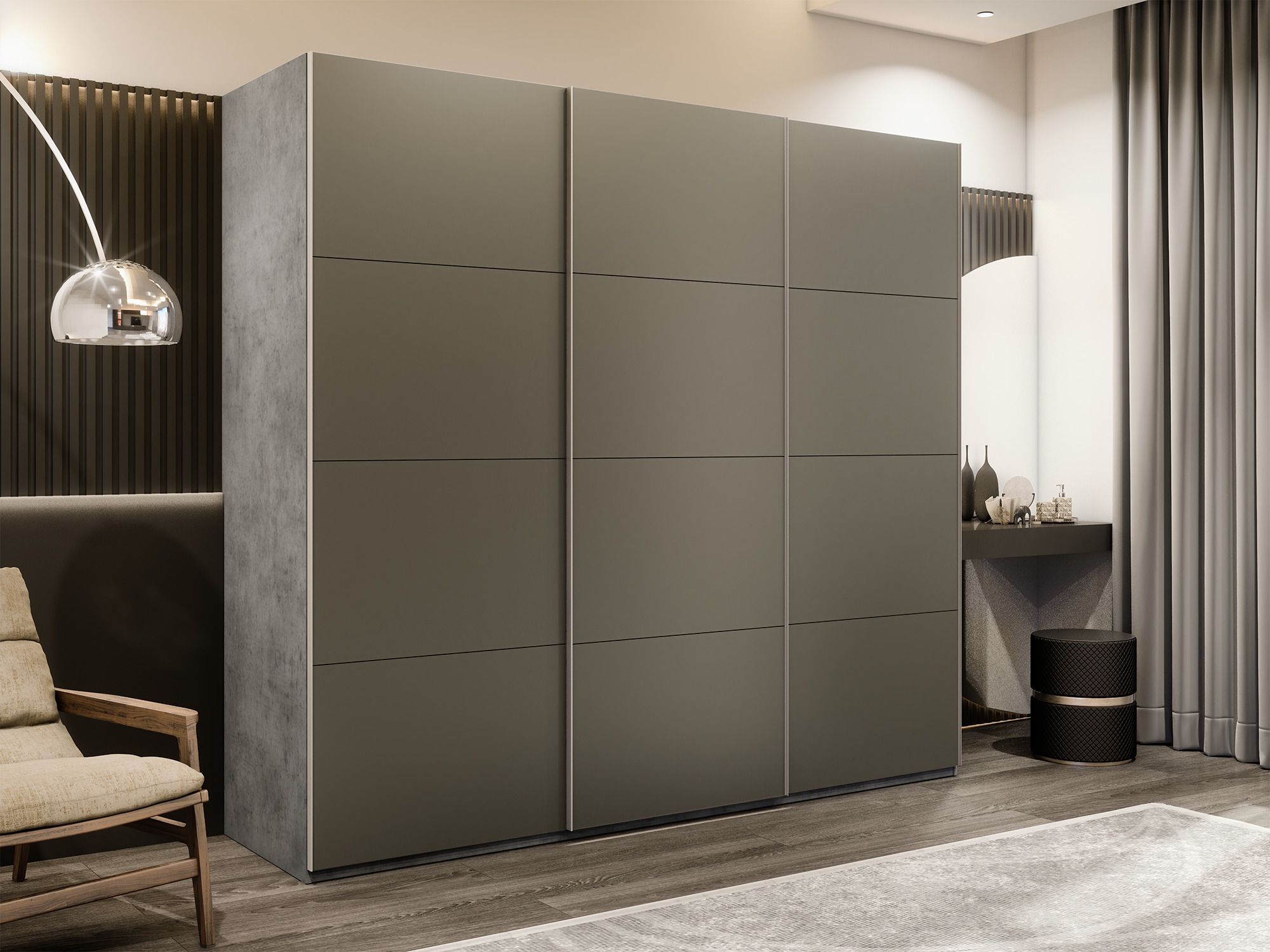 Отзывы о Столплит Шкаф-купе Эста 3-х дверный Стекла хаки/Доводчик 300х66х240 Бетон