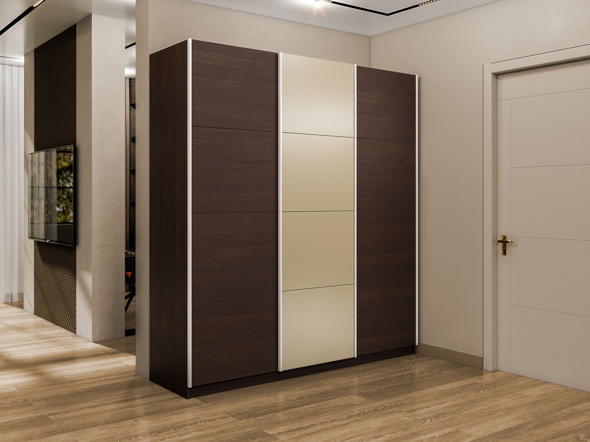 Шкаф-купе Прайм 3-х дверный Стекла фисташка/ДСП/Доводчики 180х57х230 (Венге) Код I0000409043