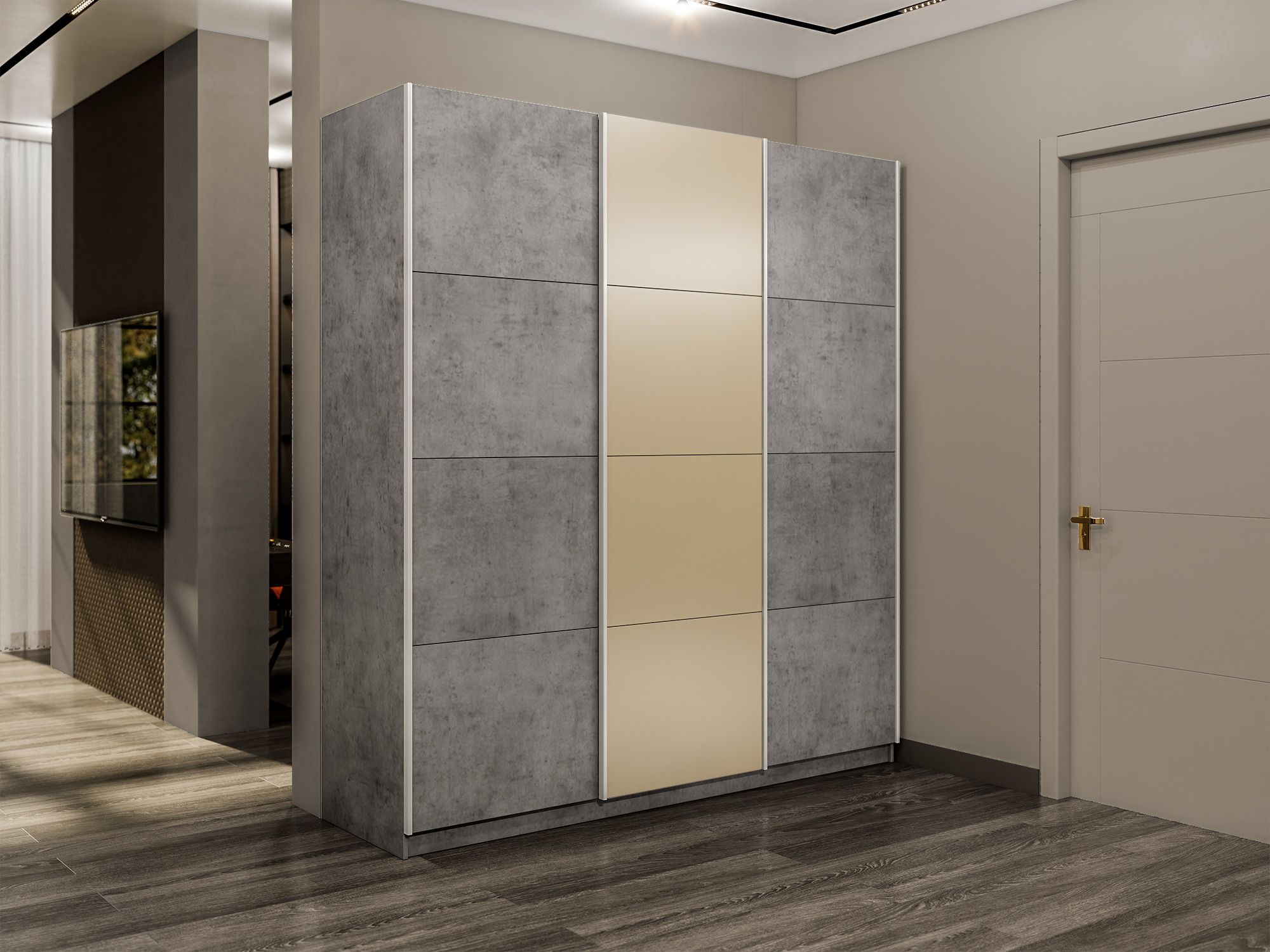 Отзывы о Столплит Шкаф-купе Прайм 3-х дверный Стекла фисташка/ДСП/Доводчики 210х57х230 Бетон
