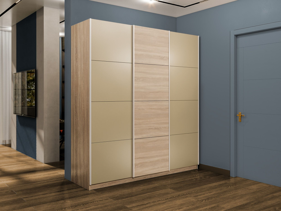 Шкаф-купе Прайм 3-х дверный Стекла фисташка/ДСП/Доводчики 180х57х230 (Дуб сонома) Код I0000409258