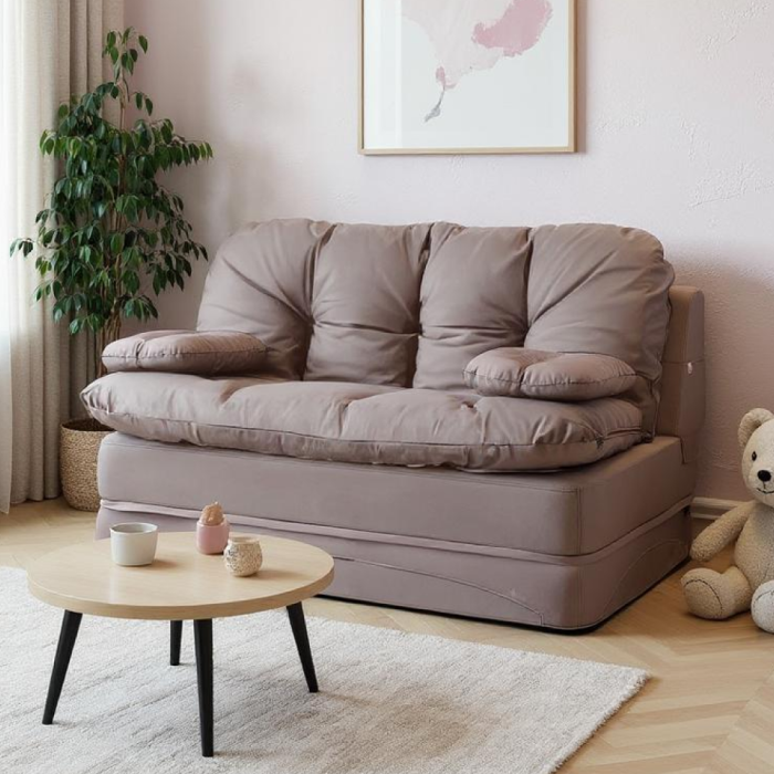 Раскладной диван легко трансформируется в полноценное спальное место. Для раскладывания необходимо просто отодвинуть его от стены и опустить спинку. Его можно использовать в качестве кровати для одного взрослого человека или как двухспальный диван кровать. Перина поможет организовать дополнительное спальное место или стать удобным игровым пространством для детей.