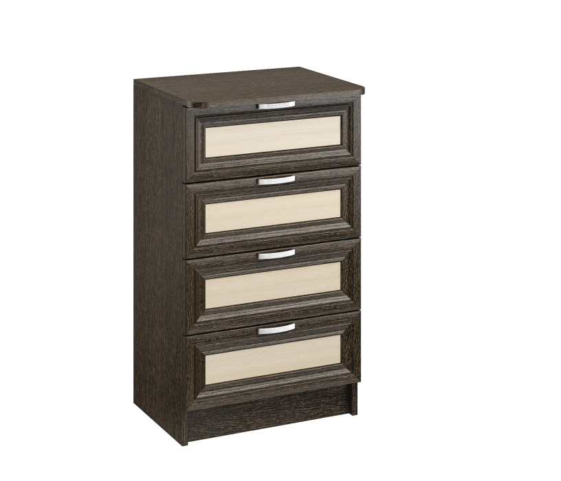 Комод ВС 500 благодаря не большой ширине 52 см,удачно разместится даже в маленьком помещении.Тем не менее,4 выдвижных ящика,позволяют разместить множество вещей.Корпус ЛДСП,фасады рамочные МДФ.Производитель оставляет за собой право менять фурнитуру.