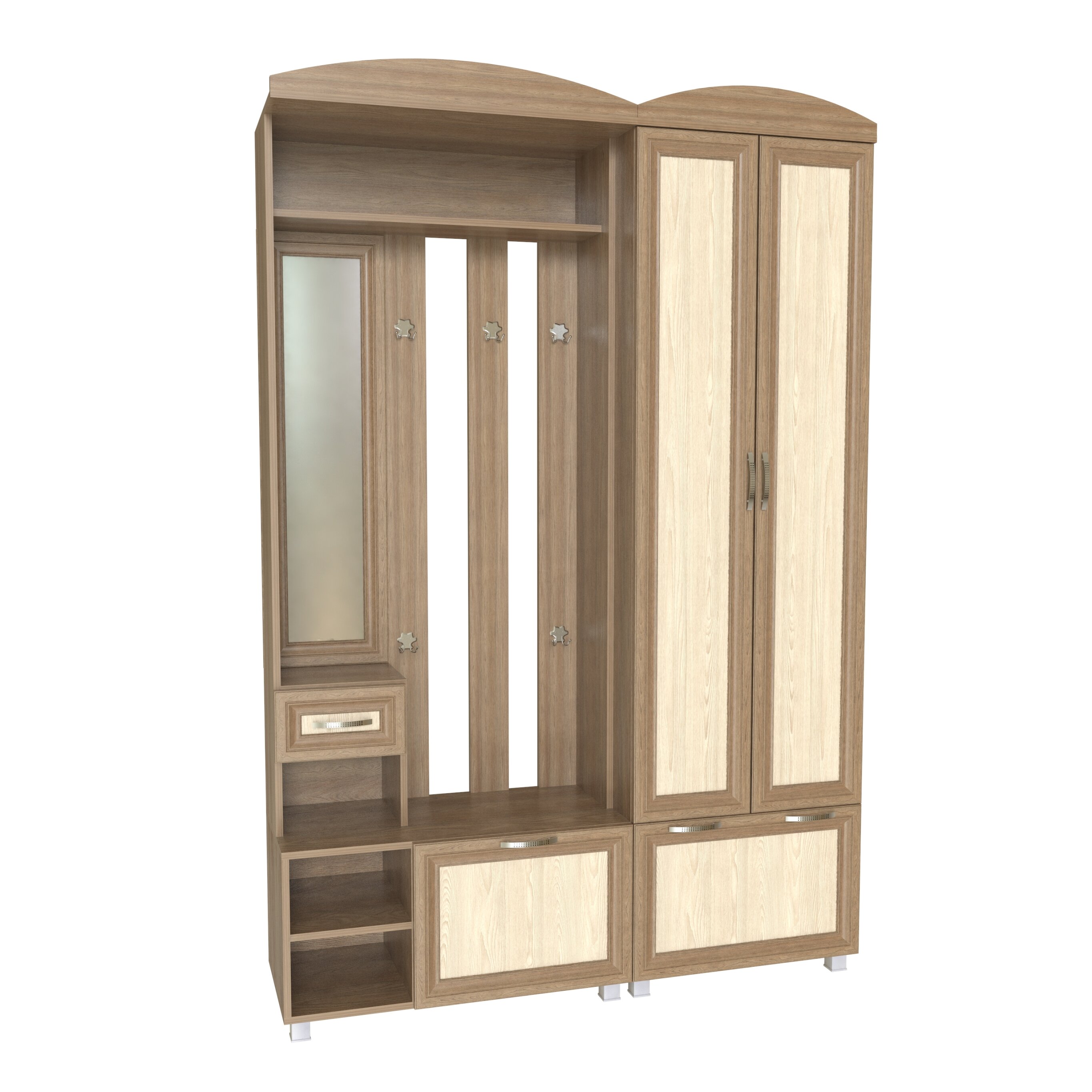 Обувница с двумя откидными нишами под обувь, распашной дверью со съемными полками и выдвижным ящиком. Тумба идеально встанет в Вашей прихожей и не займет много места.Корпус и фасады из качественного ЛДС.Производитель оставляет за собой право менять фурнитуру.
