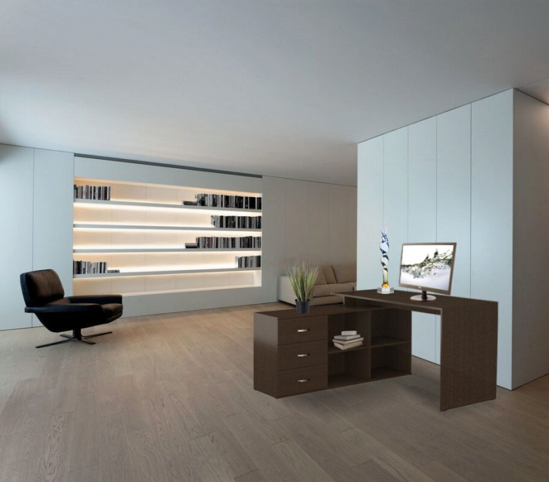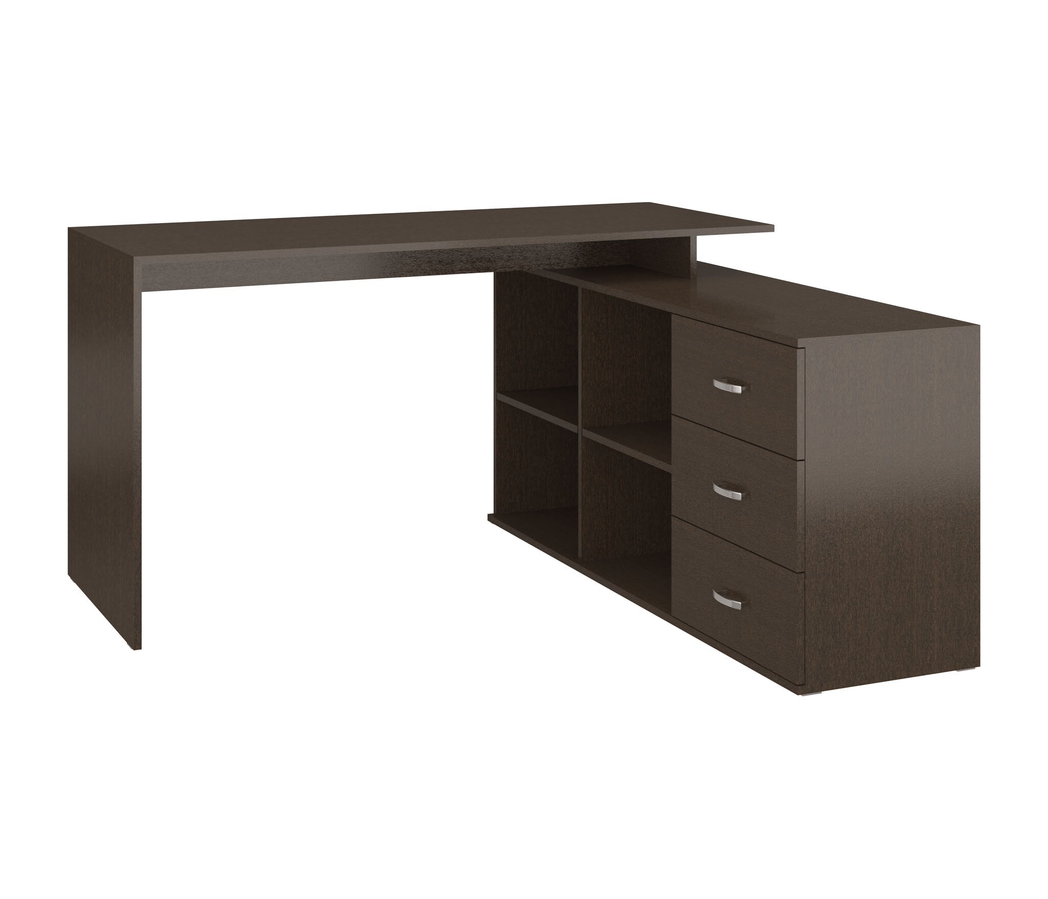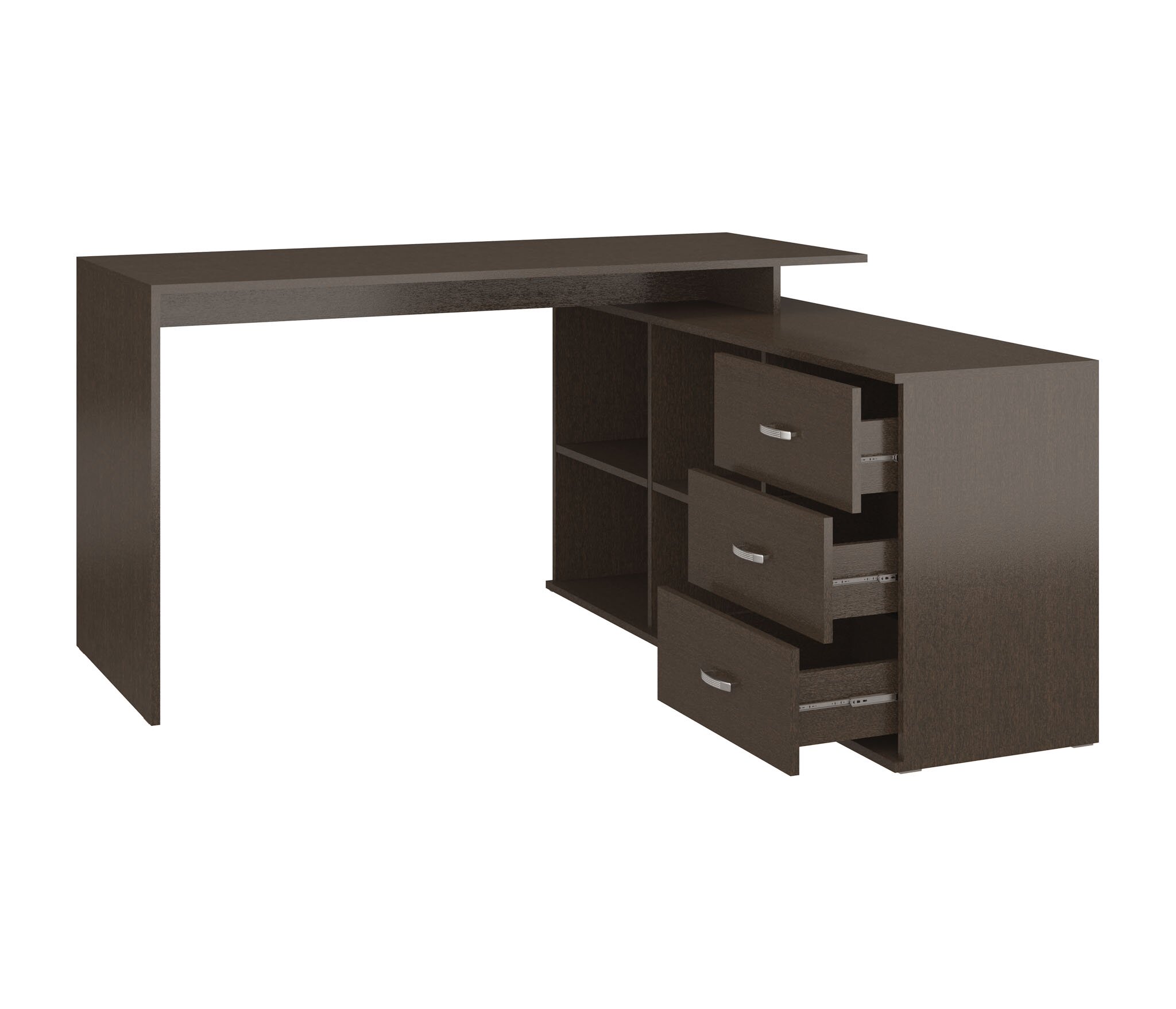 Компьютерный стол СК-16 выполнен из качественной ЛДСП в лаконичном деловом стиле: строгие геометрические линии, , минимум фурнитуры. Направляющие шариковые.Благодаря продуманной конструкции, все необходимое для работы всегда будет под рукой: просторная прямоугольная столешница Размером ДЛ 145 см,Шир 40 см и расположенный к ней под прямым углом модуль с полками и тремя выдвижными ящиками Размером ДЛ 140 см,шир 40 см гармонично сочетаются в рабочем пространстве.Высота стола 75 см.2 ниши с полками могут использоваться под процессор ,так как полки съёмные(45 см шир и высота 57 см каждой нишиниши),Выдвижные ящики шир 47 см,глуб 38 см.