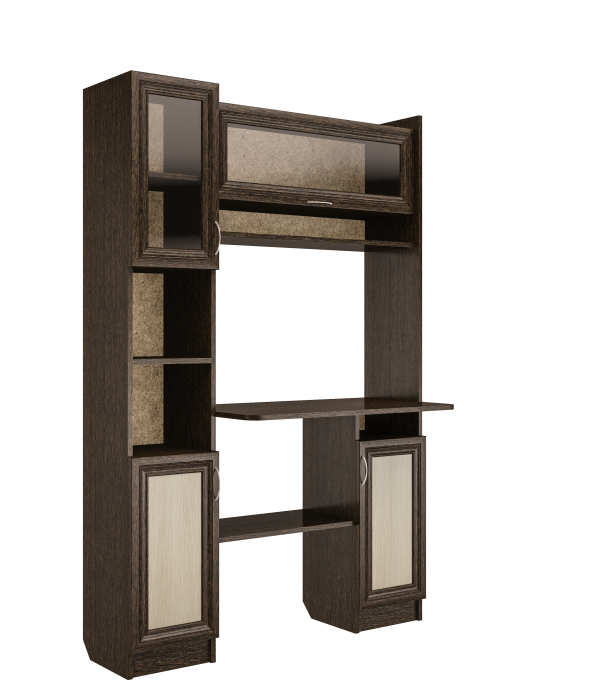 Уголок школьника №2 разработан как для школьников,так и для врослых пользователей. Отличается компактными размерами1700*1150*500 и функциональностью,что позволяет разместить его,даже в небольшом помещении.Корпус Выполнен из ЛДСП, с рамочными фасадами плёнка МДФ+стекло.