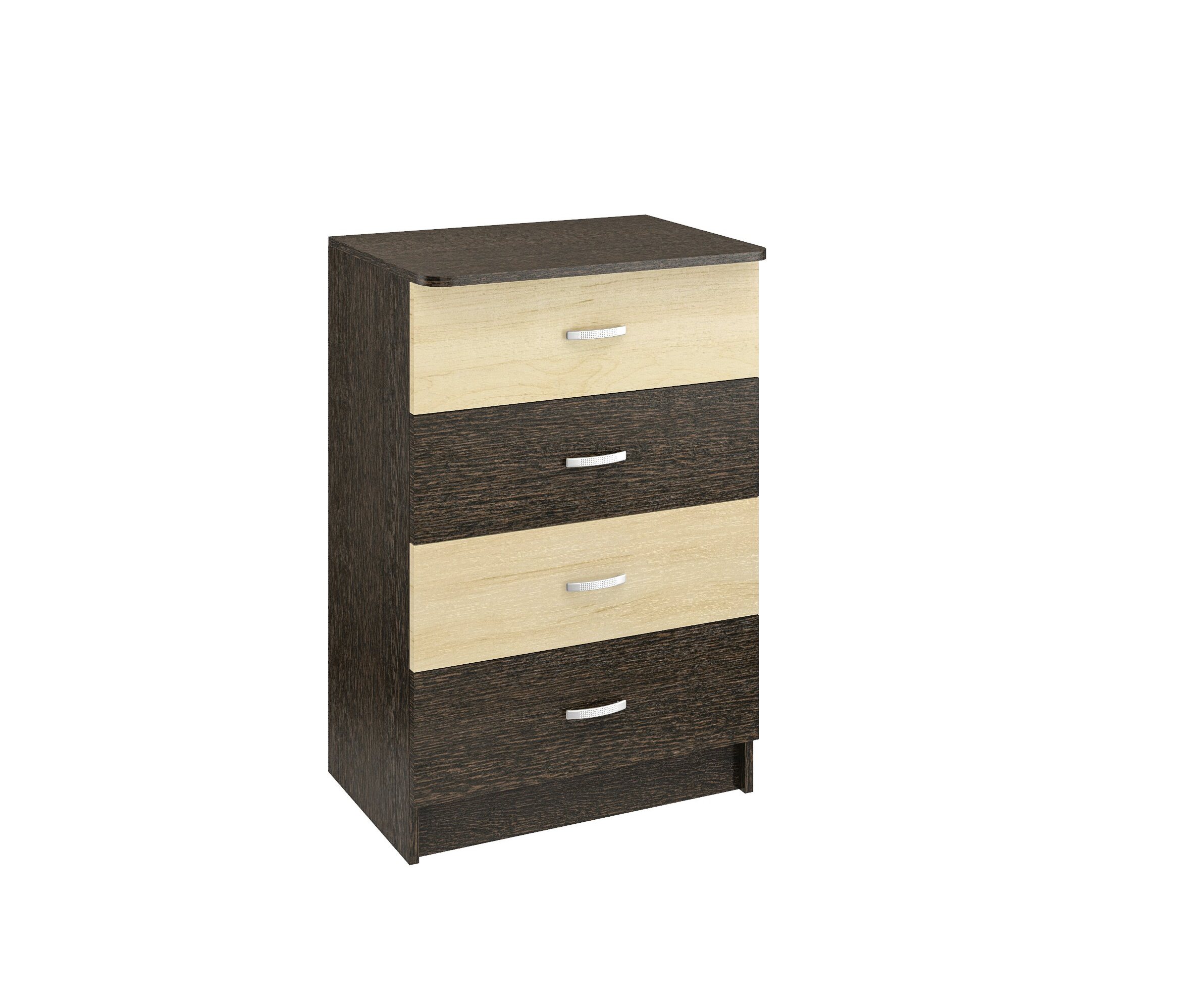 Комод КМ-10 изготовлен из ЛДСП.Вместительный ,оснащён четырьмя выдвижными ящиками на роликовых направляющих.Высота комода 910мм,ширина 620 мм,глуб 430 мм.Ручки пластик,под цвет серебра ,благодаря небольшим размерам,впишется в интерьер любого помещения.