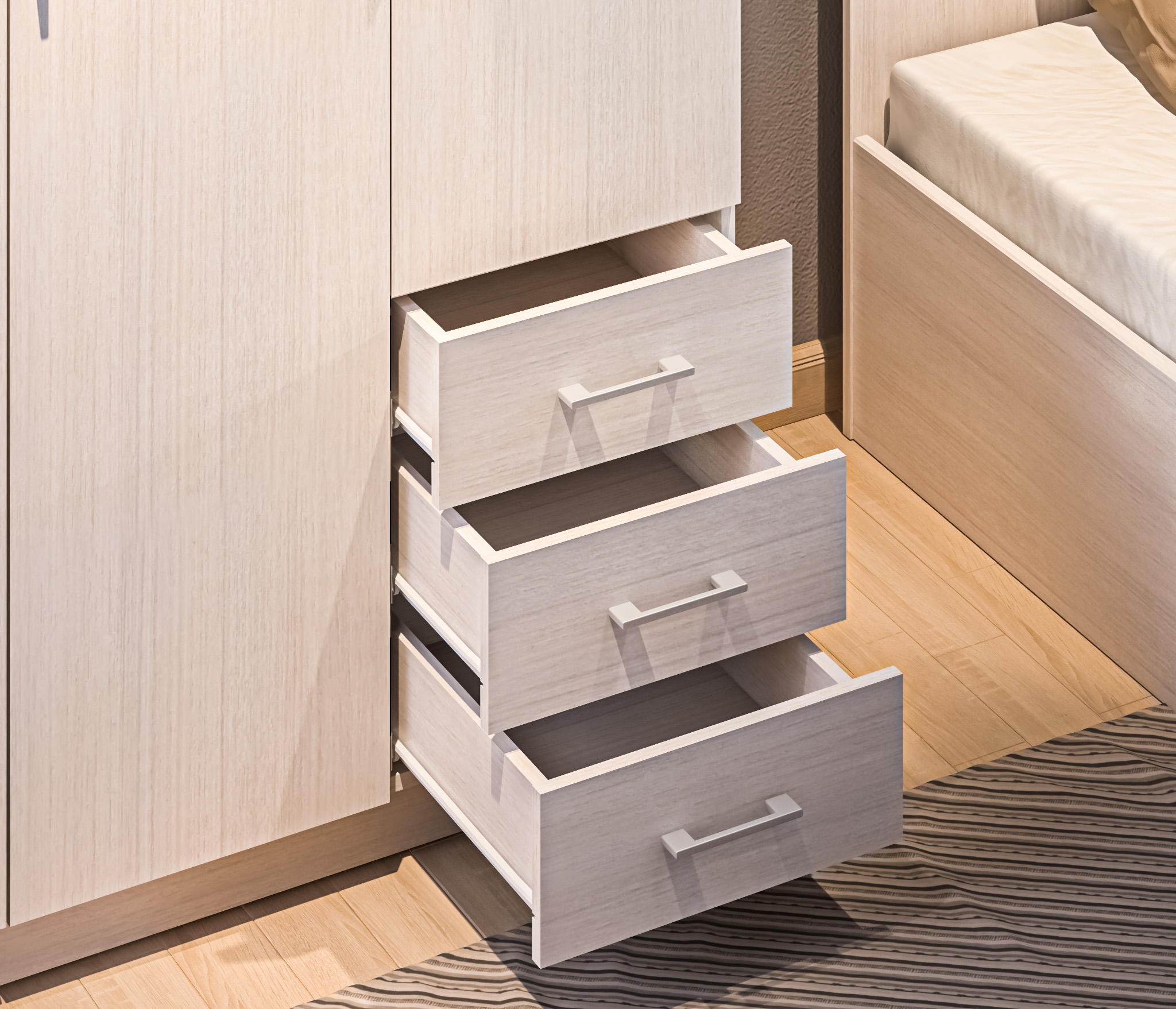 Габаритные размеры шкафа Терра: ширина 120 см, высота 200 см и глубина 57 см. Он может быть отдельным предметом мебели, а также частью гарнитура. Шкаф имеет вместительное плательное отделение со штангой, над которым расположена антресоль и отделение с полками и тремя выдвижными ящиками, где можно хранить мелкие аксессуары. Выполнен шкаф из прочного и качественного ЛДСП. Цвет Авиньон.
