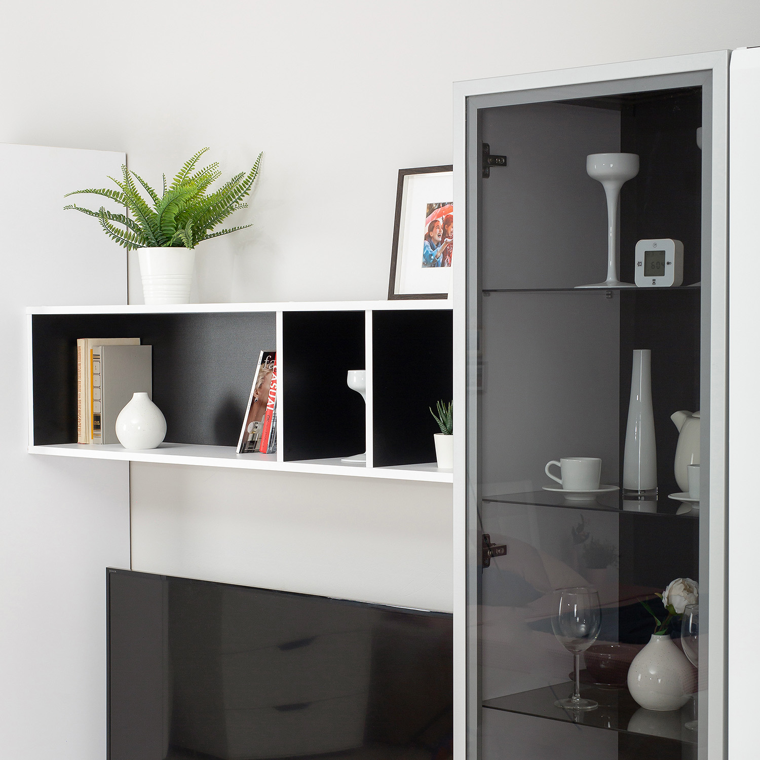 Задняя стенка черного цвета контрастирует с белым корпусом.