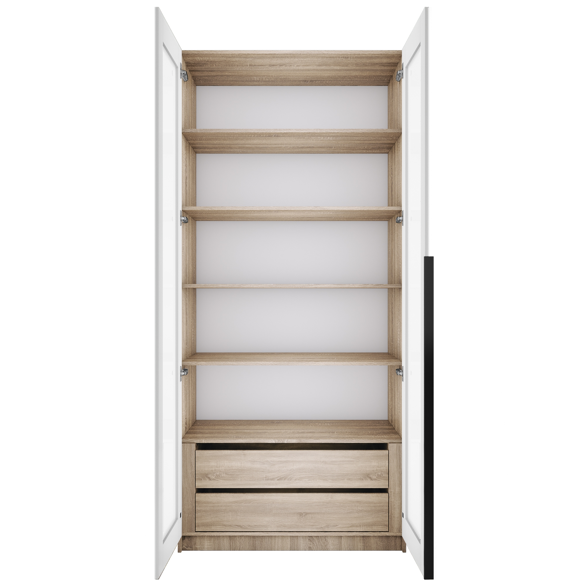 Шкаф распашной Е1 Локер 101x52.5x220 см, с белым стеклом , полками и модулем (Дуб сонома) Код I0000426772