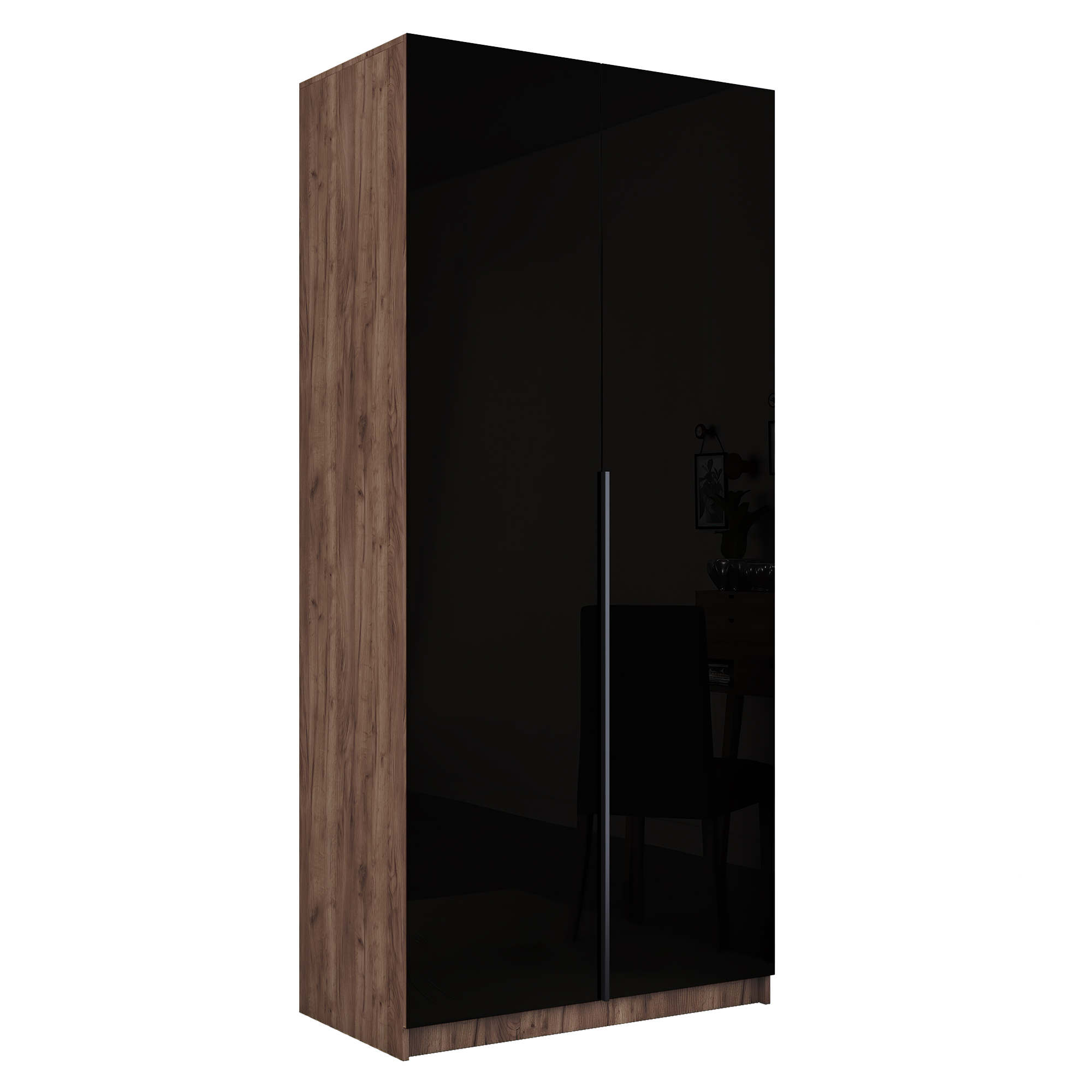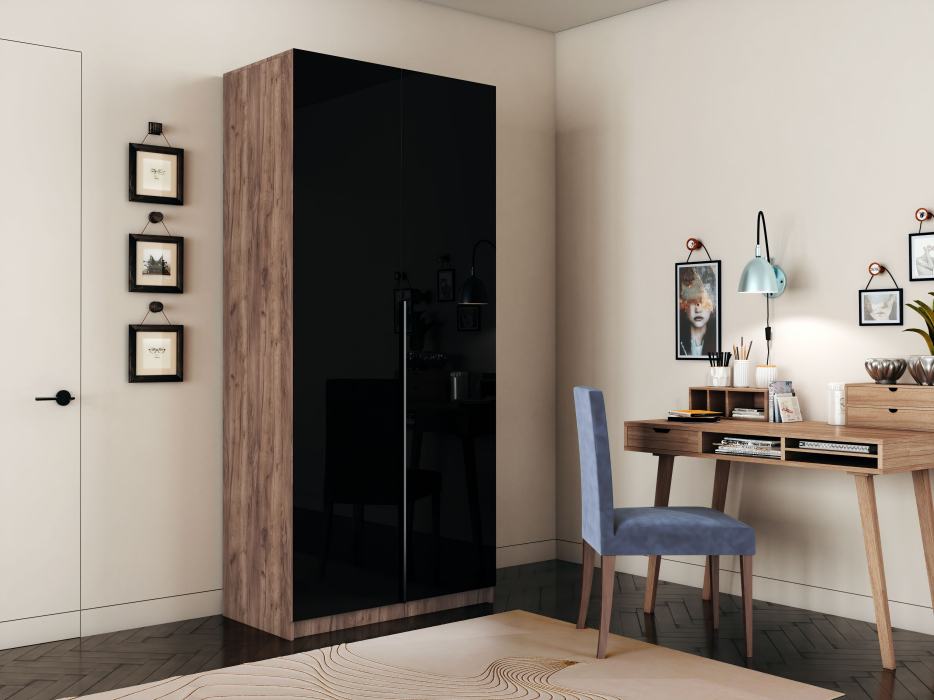 Шкаф распашной Е1 Локер 101x52.5x220 см, с черным стеклом и полками Код I0000426774