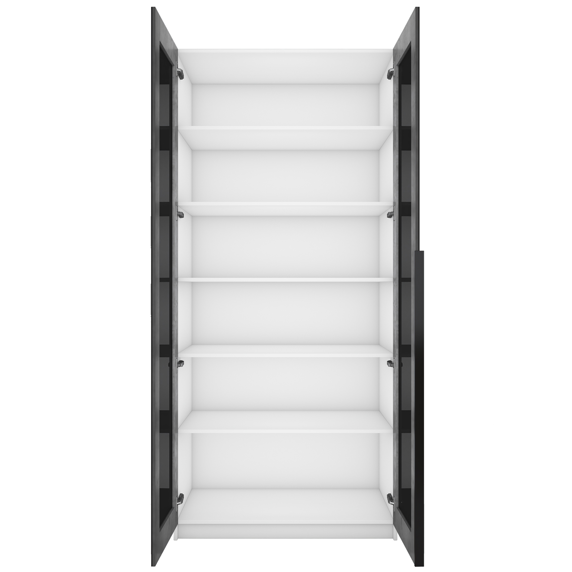 Фасады шкафа изготовлены из стекла черного цвета, оклеенного противоосколочной пленкой с внутренней рамкой из ЛДСП Бетон.