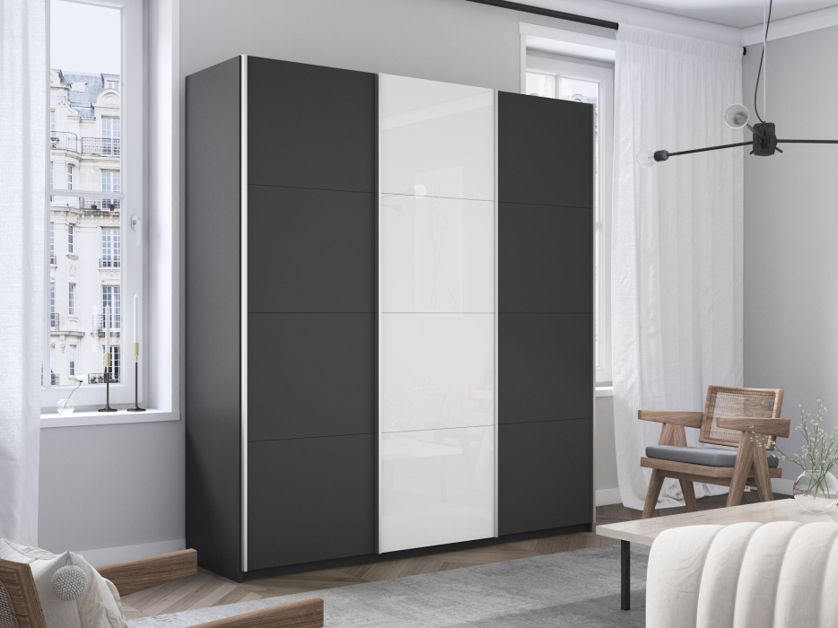 Отзывы о Столплит Шкаф-купе Прайм 3-х дверный ДСП/Стекло белое/Доводчики 180х57х230 Серый диамант