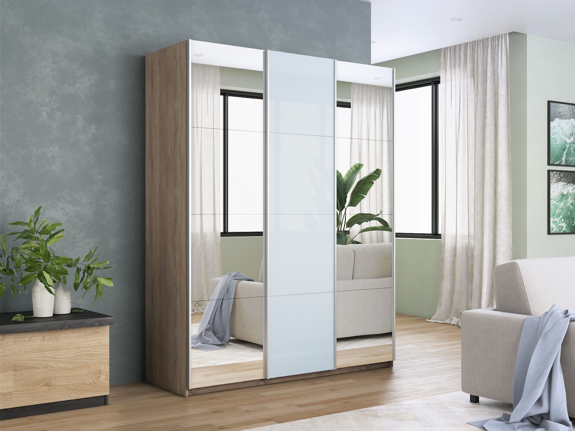 Отзывы о Столплит Шкаф-купе Прайм 3-х дверный Зеркала/Стекло белое/Доводчики 180х57х230 Дуб сонома