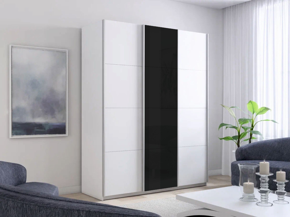 Отзывы о Столплит Шкаф-купе Прайм 3-х дверный ДСП/Стекло черное/Доводчики 210х57х230 Белый снег
