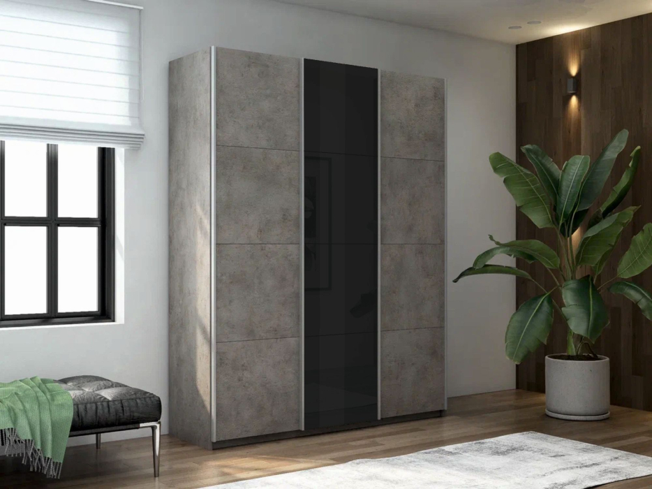 Отзывы о Столплит Шкаф-купе Прайм 3-х дверный ДСП/Стекло черное/Доводчики 210х57х230 бетон
