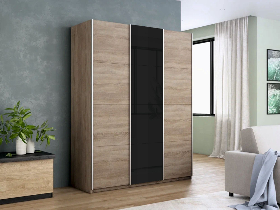 Отзывы о Столплит Шкаф-купе Прайм 3-х дверный ДСП/Стекло черное/Доводчики 210х57х230 Дуб сонома