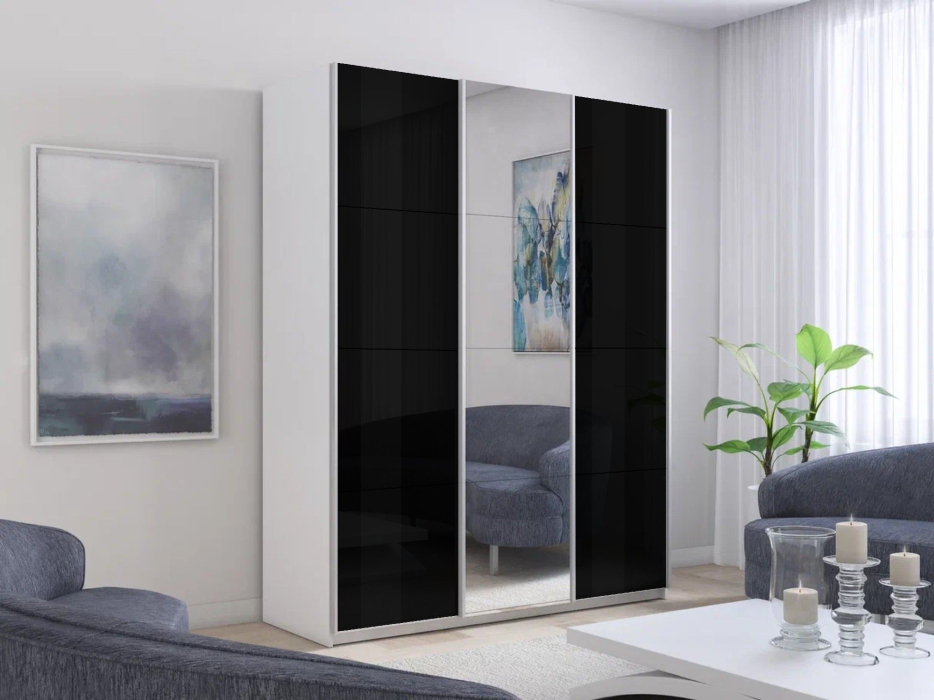 Отзывы о Столплит Шкаф-купе Прайм 3-х дверный Стекла черные/Зеркало/Доводчики 210х57х230 Белый снег