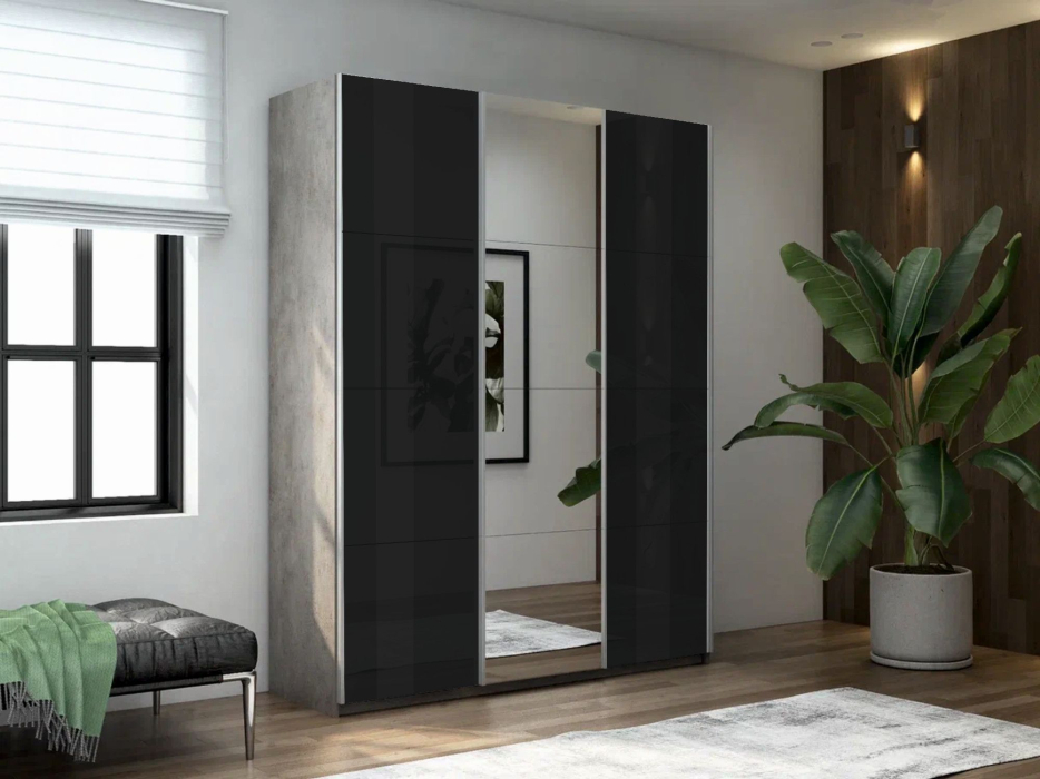 Отзывы о Столплит Шкаф-купе Прайм 3-х дверный Стекла черные/Зеркало/Доводчики 210х57х230 бетон