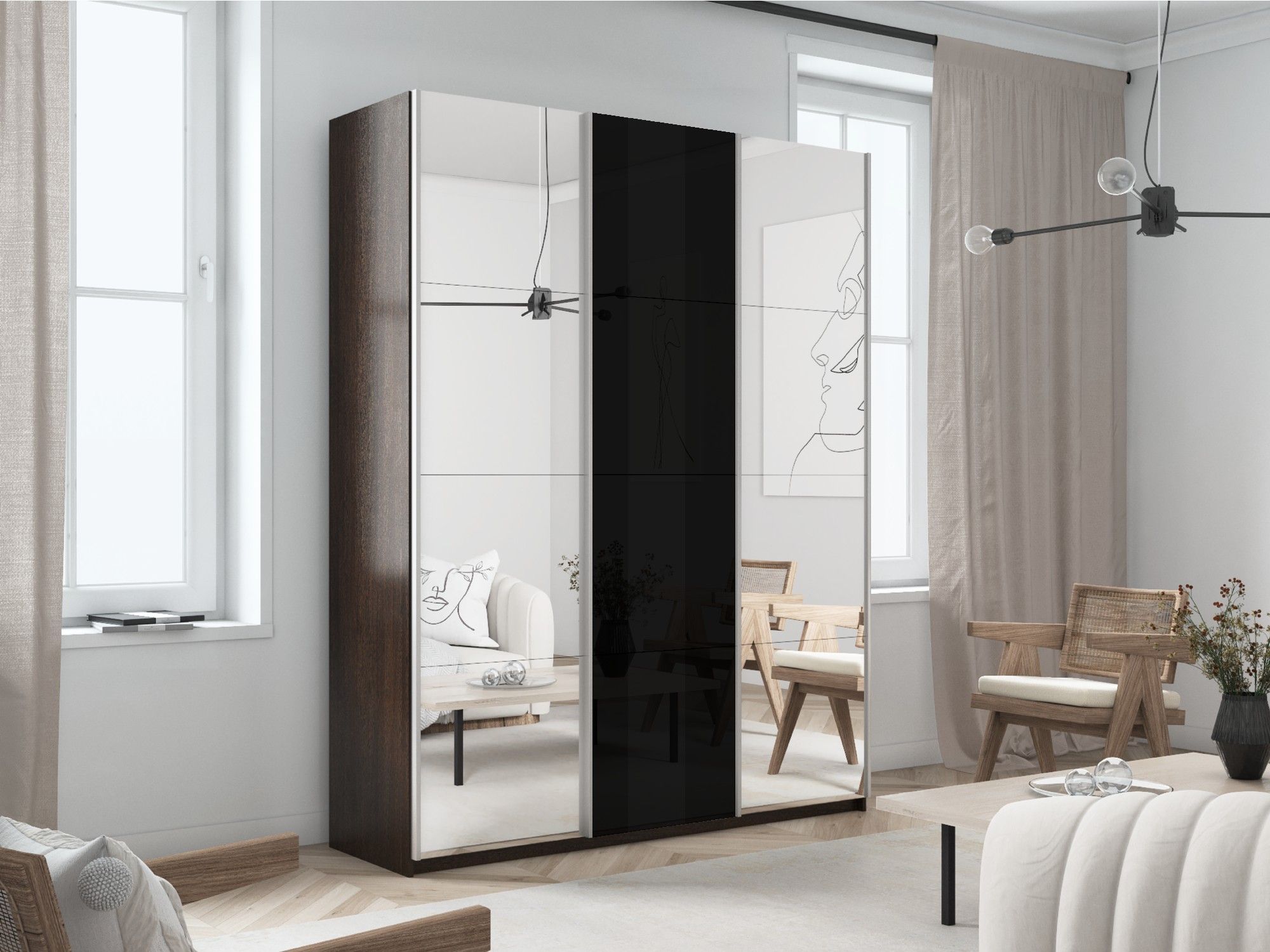Отзывы о Столплит Шкаф-купе Прайм 3-х дверный Зеркала/Стекло черное/Доводчики 180х57х230 Венге