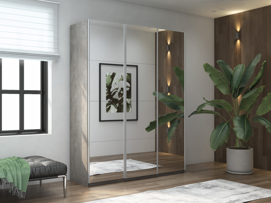 Отзывы о Столплит Шкаф-купе Широкий Прайм 3-х дверный Зеркала/Доводчики 240х57х230 бетон