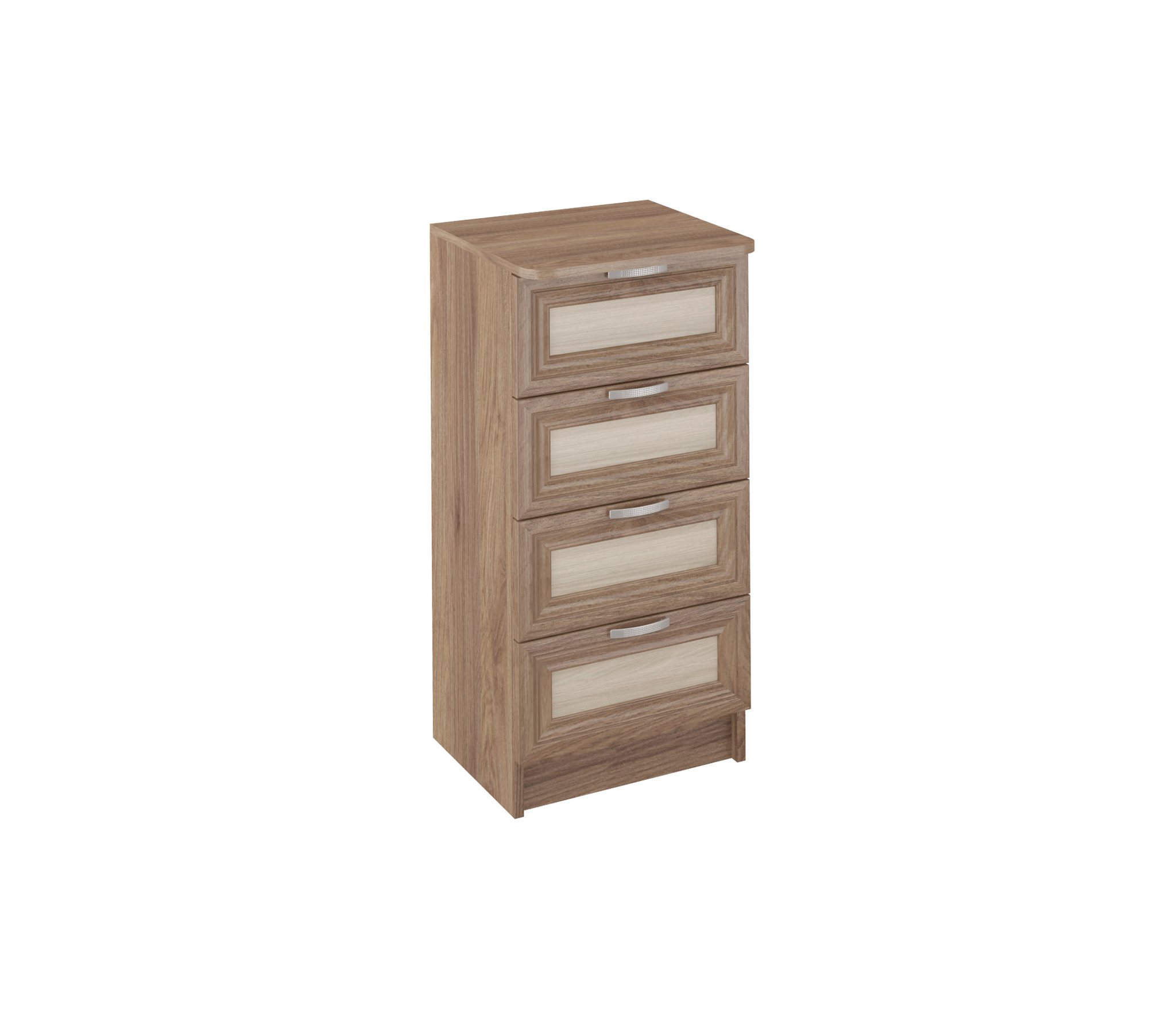 Комод ВС 400 благодаря не большой ширине 42 см,удачно разместится даже в маленьком помещении.Тем не менее,4 выдвижных ящика,позволяют разместить множество вещей.Корпус ЛДСП,фасады рамочные МДФ.