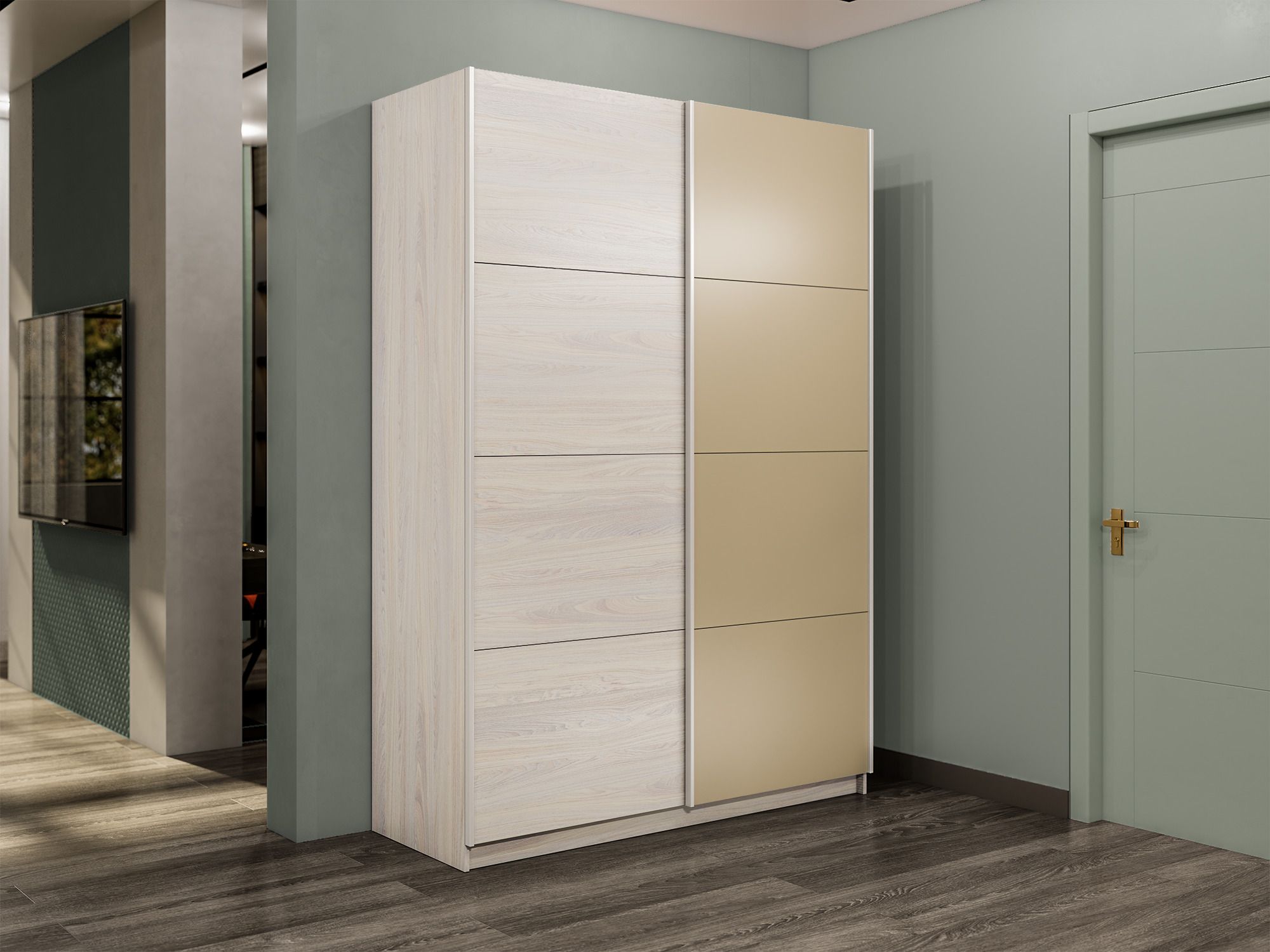 Отзывы о Столплит Шкаф-купе Прайм 2-х дверный ДСП/Стекло фисташка/Доводчики 120х57х230 Ясень Анкор светлый