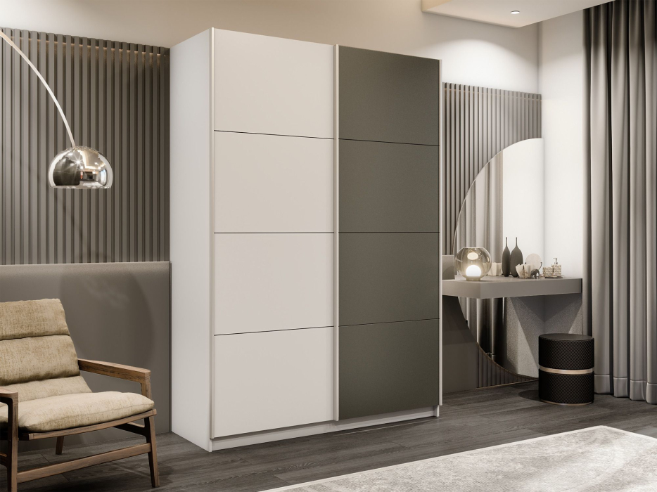 Отзывы о Столплит Шкаф-купе Прайм 2-х дверный ДСП/Стекло хаки/Доводчики 140х57х230 Белый снег