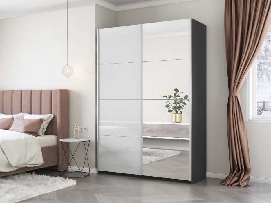 Отзывы о Столплит Шкаф-купе Прайм 2х дверный Зеркало/Белый Глянец 160х57х230 Темно-серый